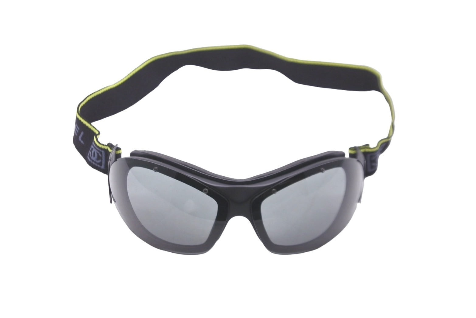 極美品 CHANEL シャネル サングラス ゴーグル ココマーク スポーツライン 26616 S5587 ブラック グリーン 中古 62655