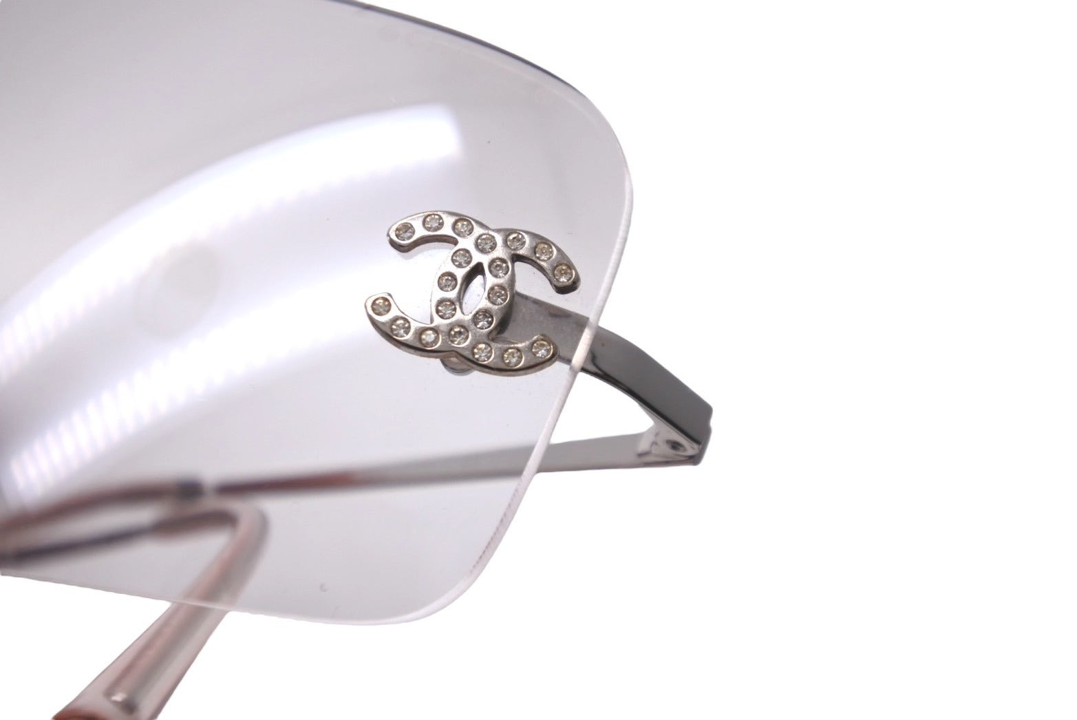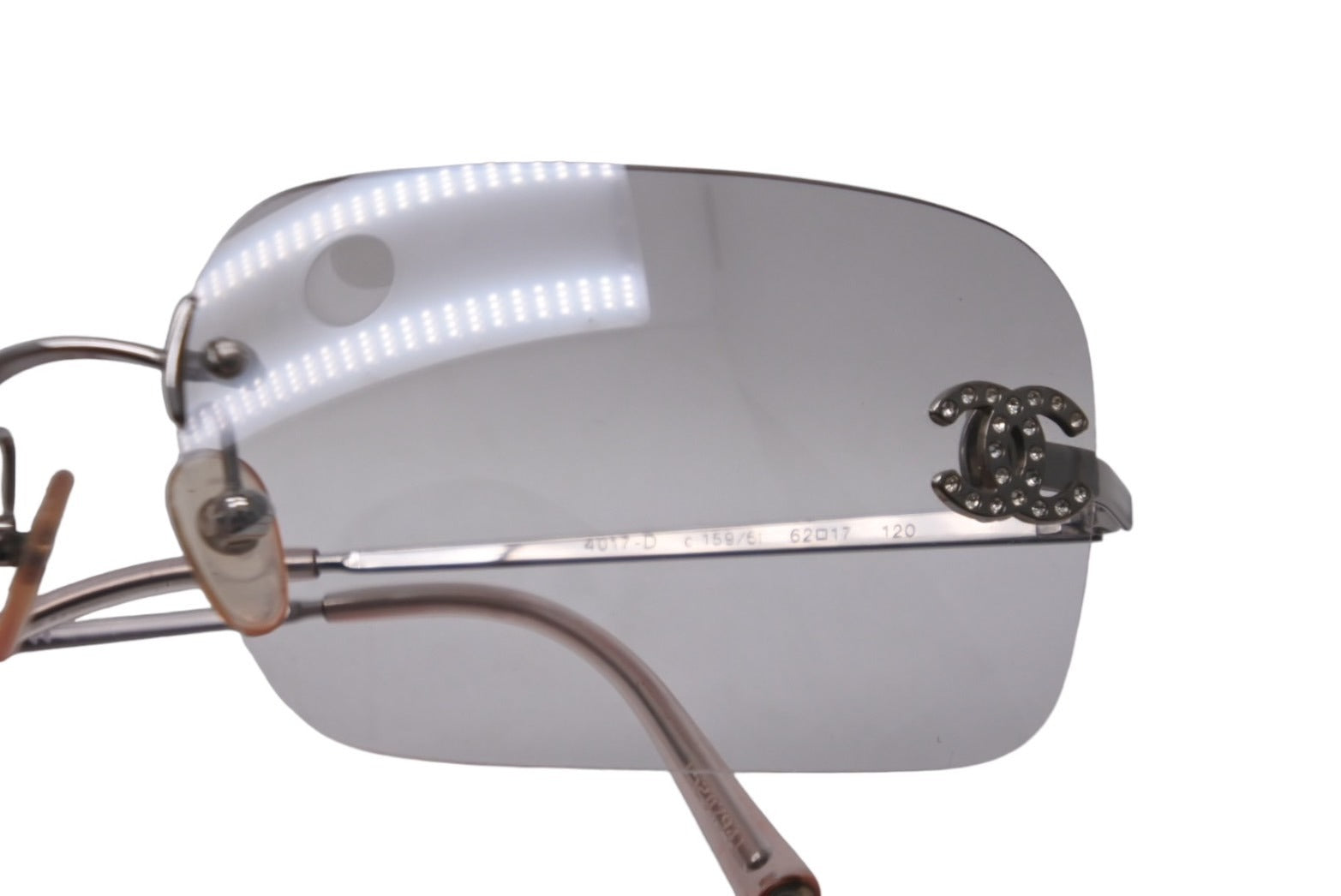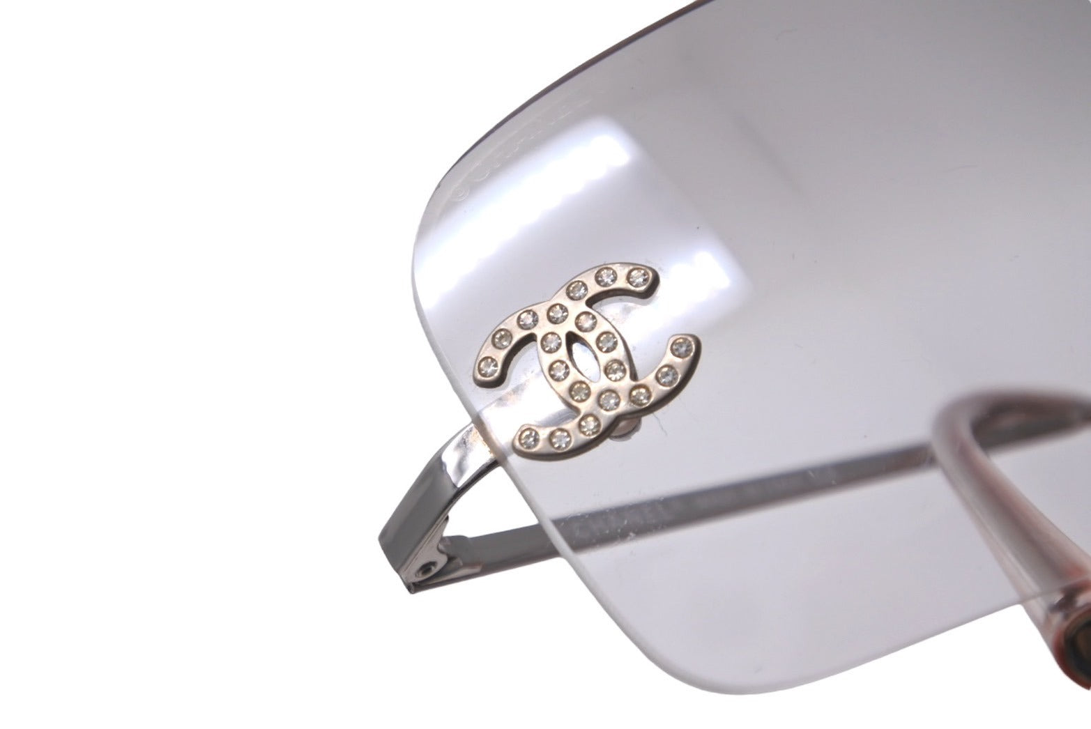 CHANEL シャネル ラインストーン ココマーク サングラス シルバー クリア リムレス アイウェア 62☐17 4017 美品 中古 63013