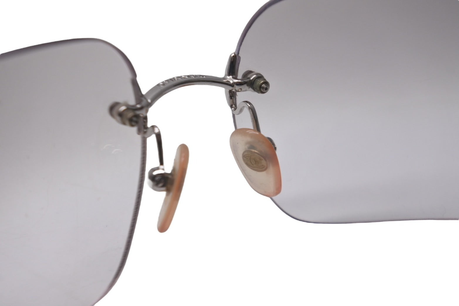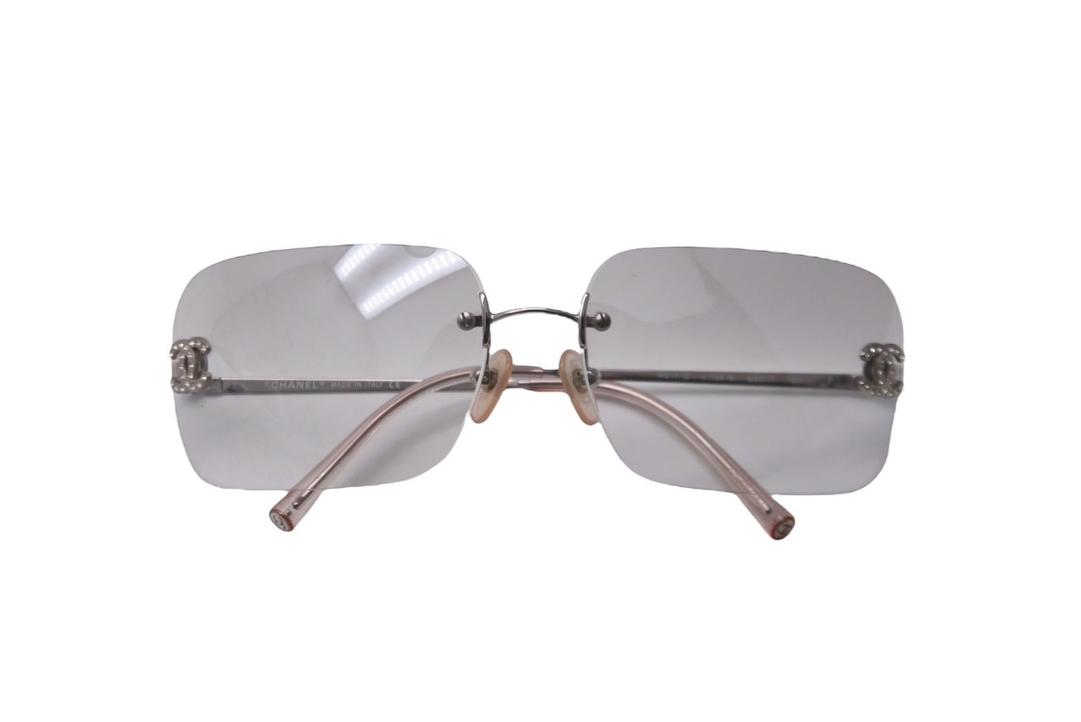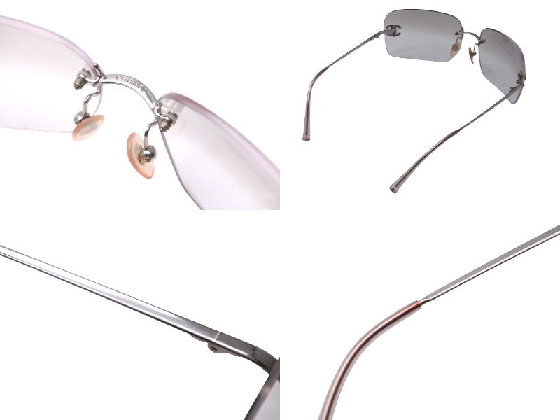 CHANEL シャネル ラインストーン ココマーク サングラス シルバー クリア リムレス アイウェア 62☐17 4017 美品 中古 63013