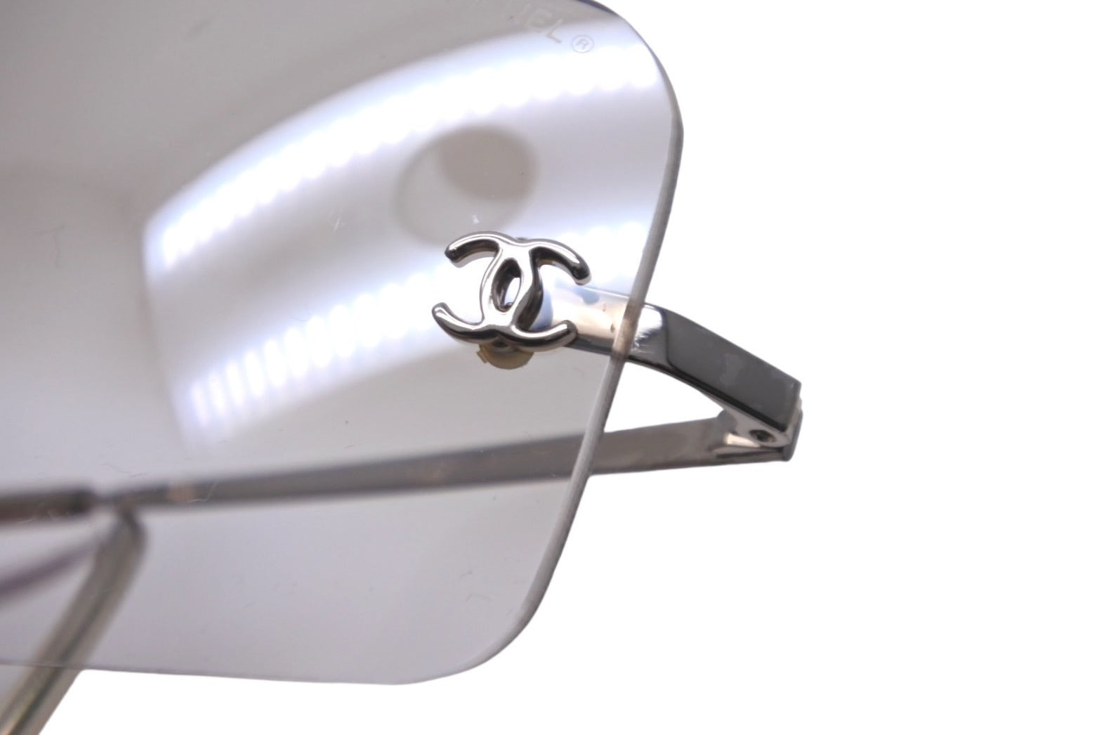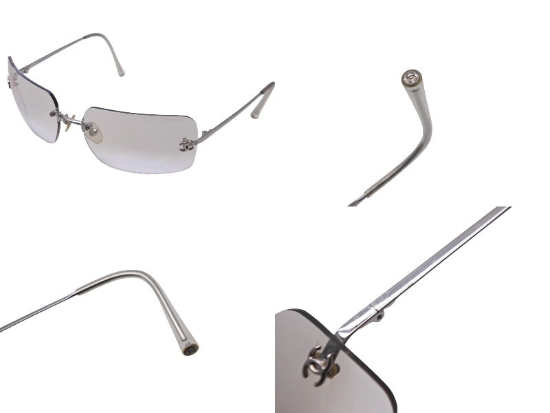 CHANEL シャネル ココマーク サングラス グレー シルバー ロゴ リムレス クリア アイウェア 小物 4017 62☐17 美品 中古 63024