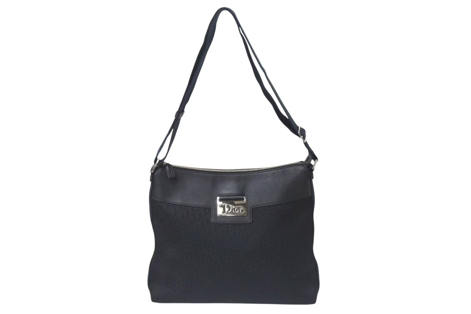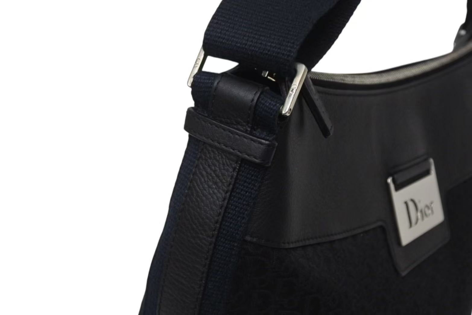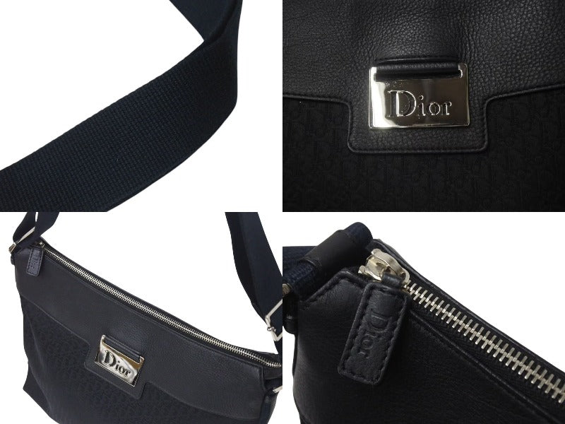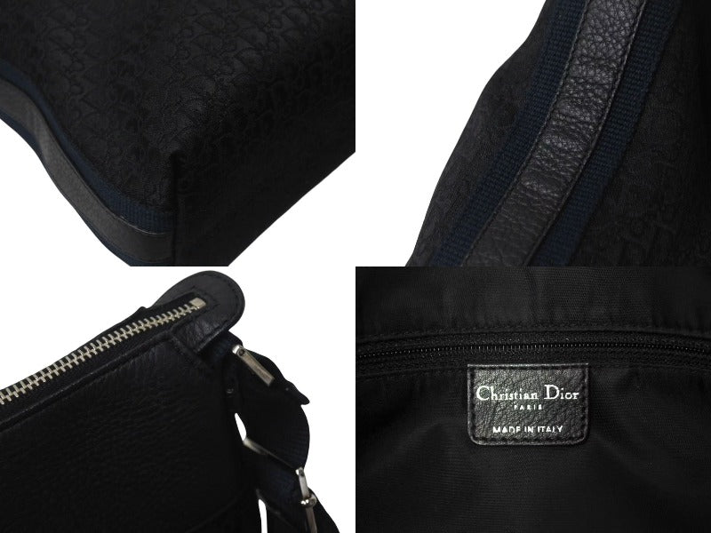 極美品 Christian Dior クリスチャンディオール ストリートシック オブリーク ショルダーバッグ ブラック ネイビー シルバー金具 ロゴ 美品 中古 4b001326