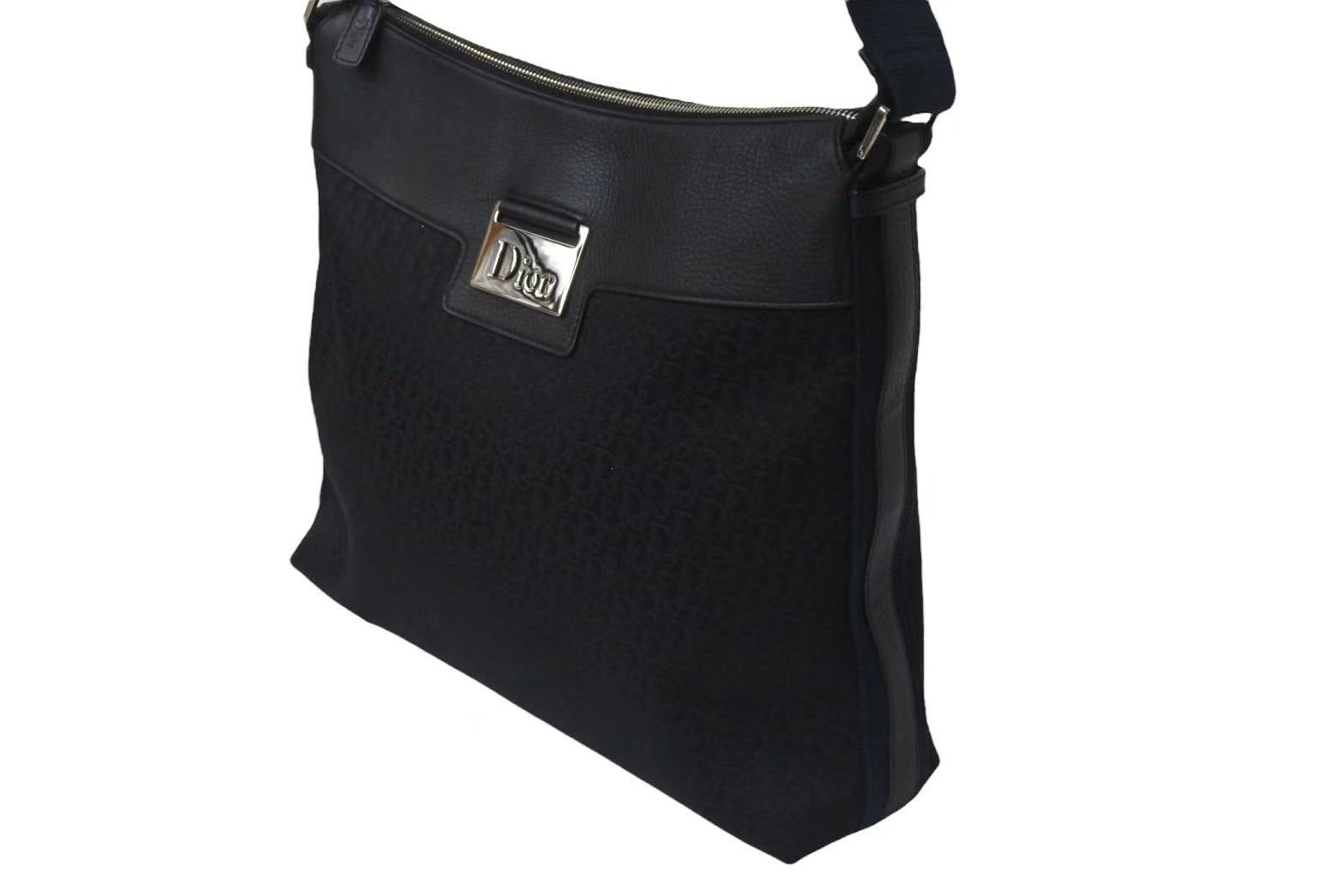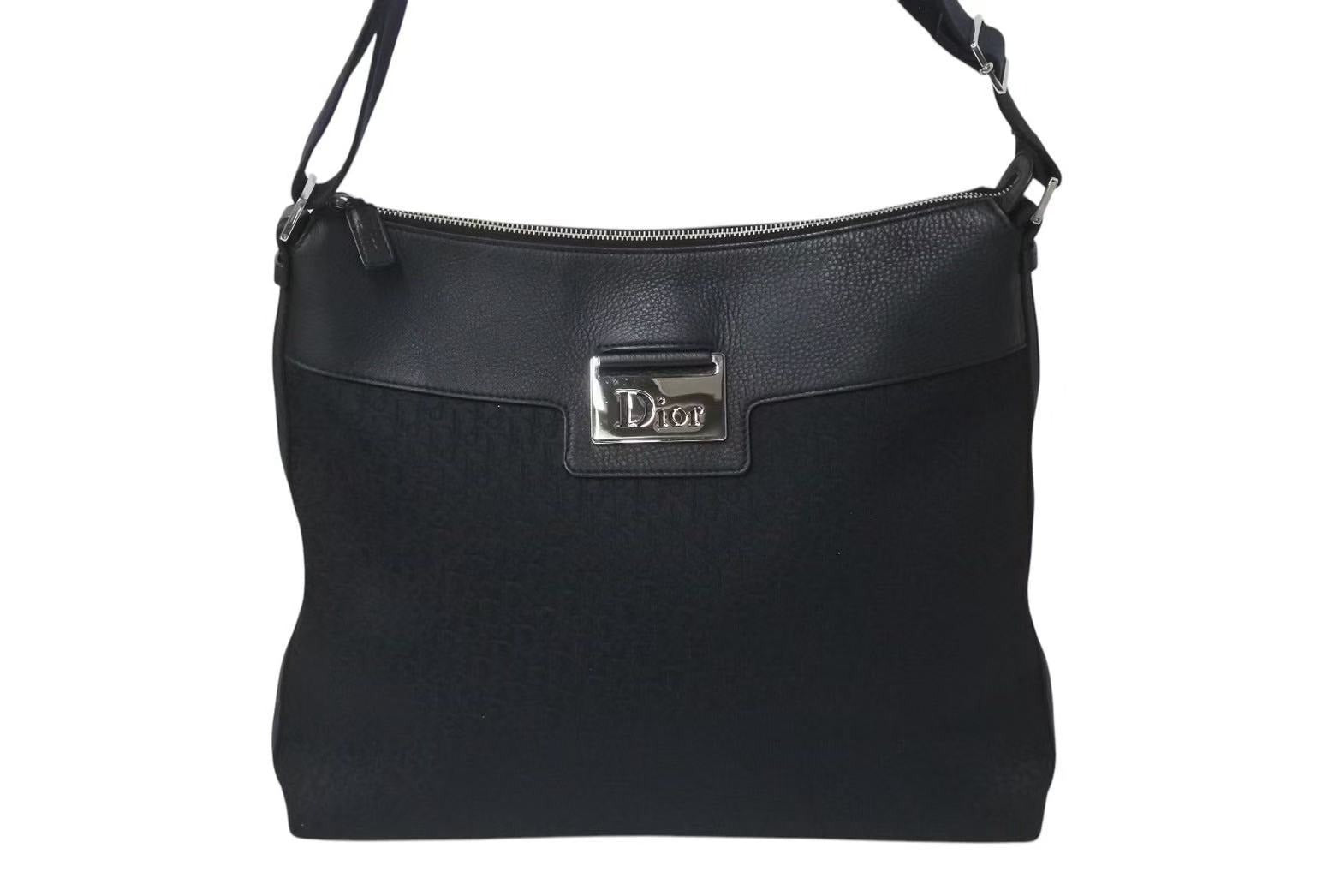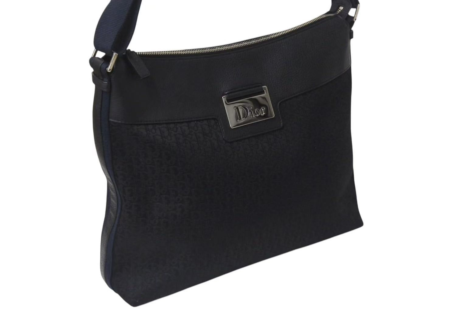 極美品 Christian Dior クリスチャンディオール ストリートシック オブリーク ショルダーバッグ ブラック ネイビー シルバー金具 ロゴ 美品 中古 4b001326