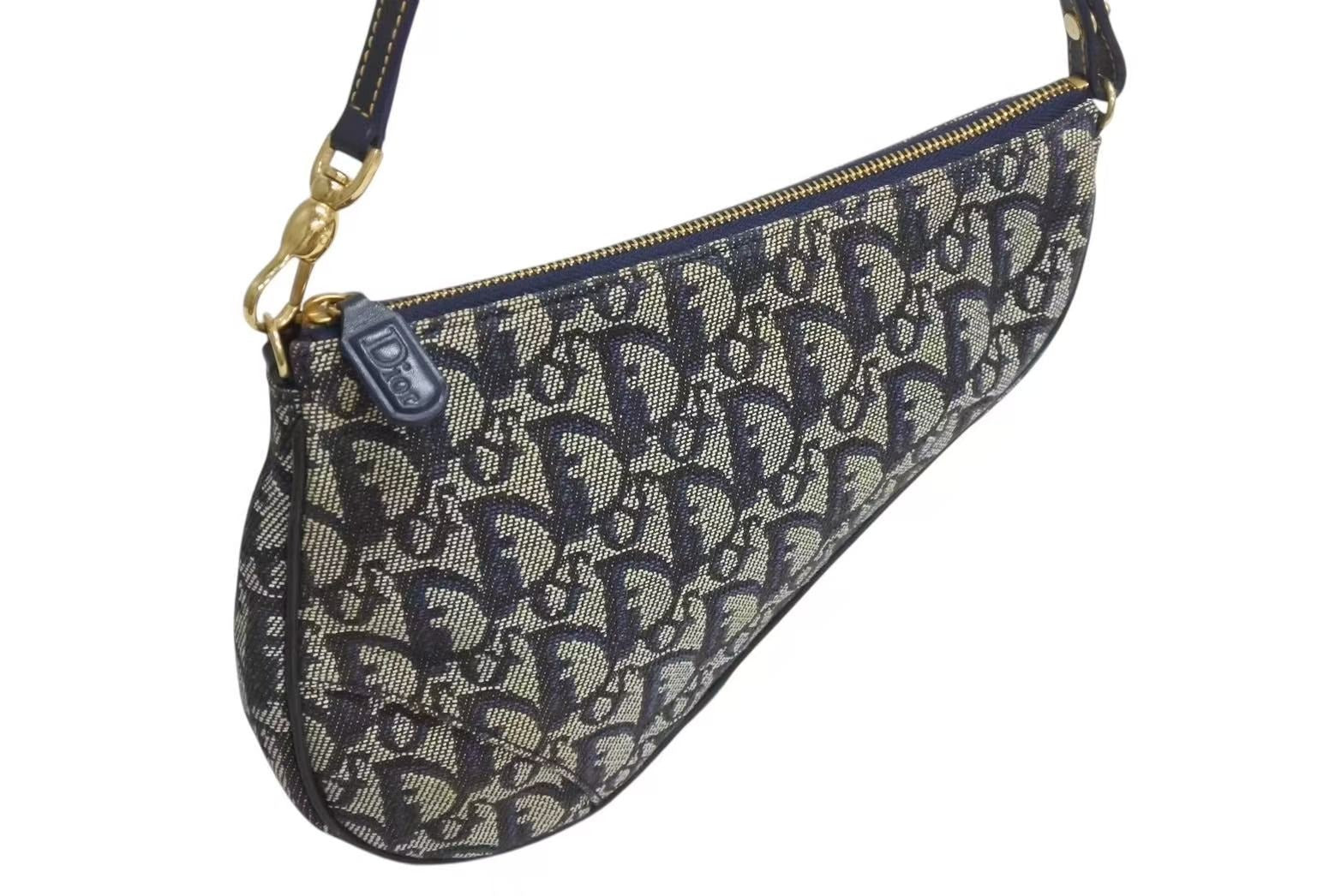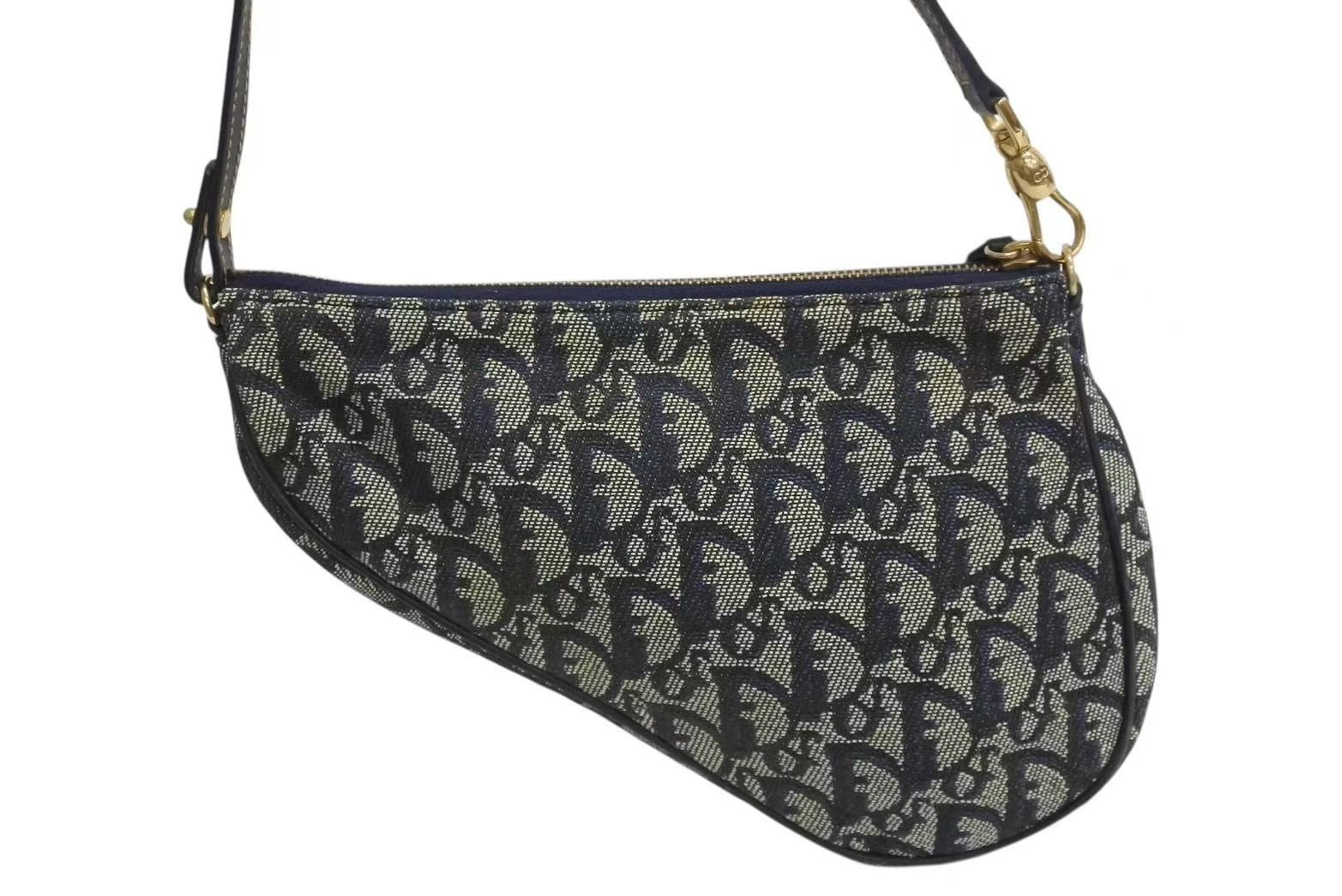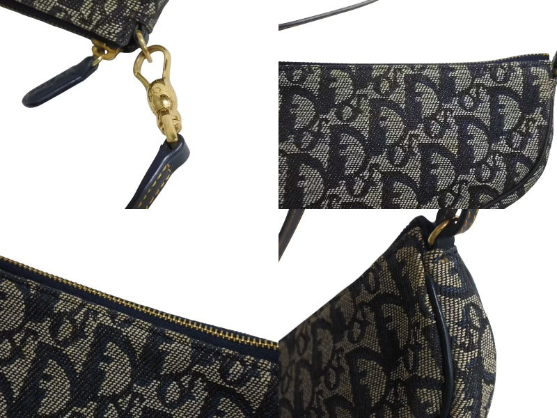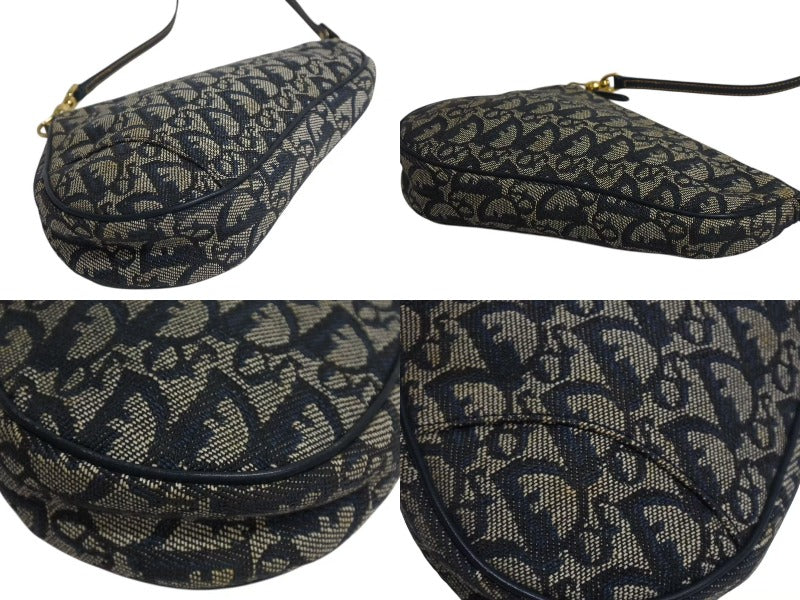 極美品 Christian Dior クリスチャンディオール トロッター サドルバッグ ワンショルダーバッグ サドルポーチ ネイビー 中古 4b002479