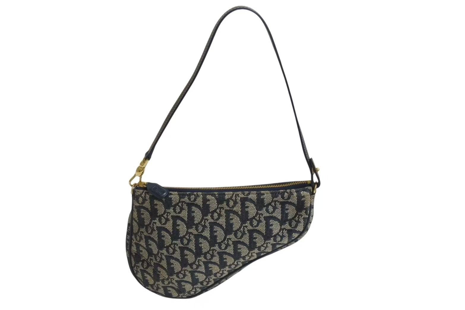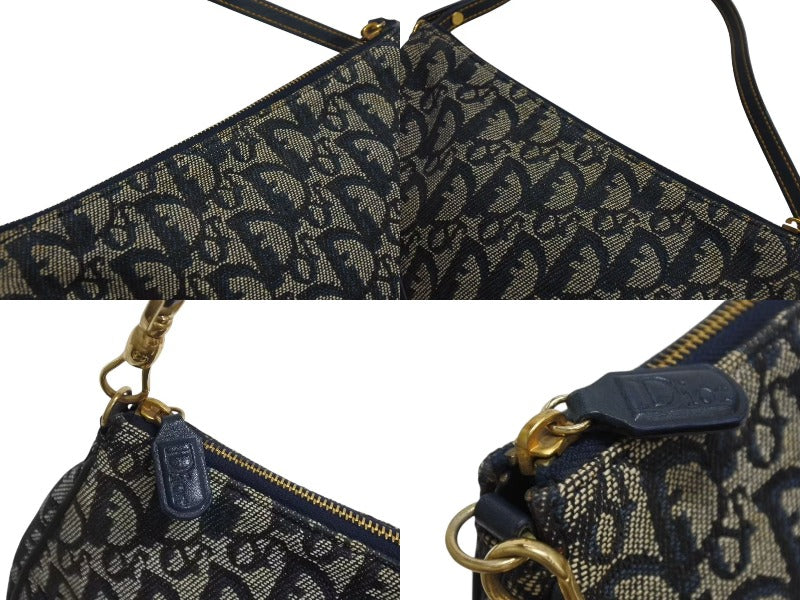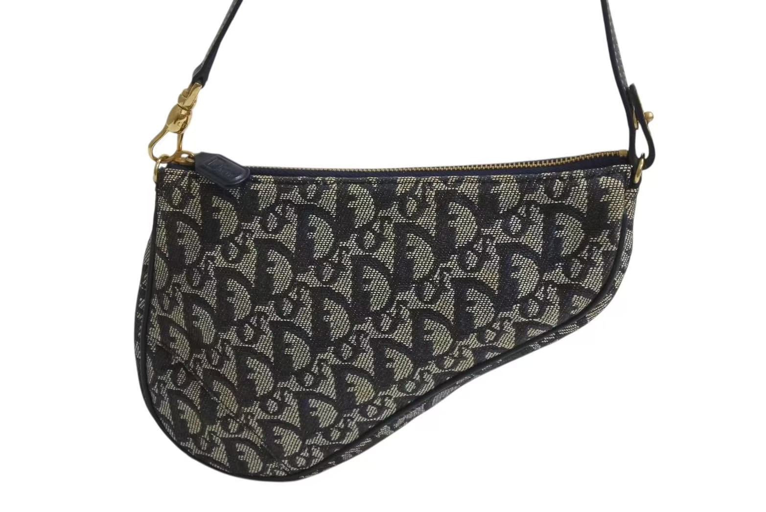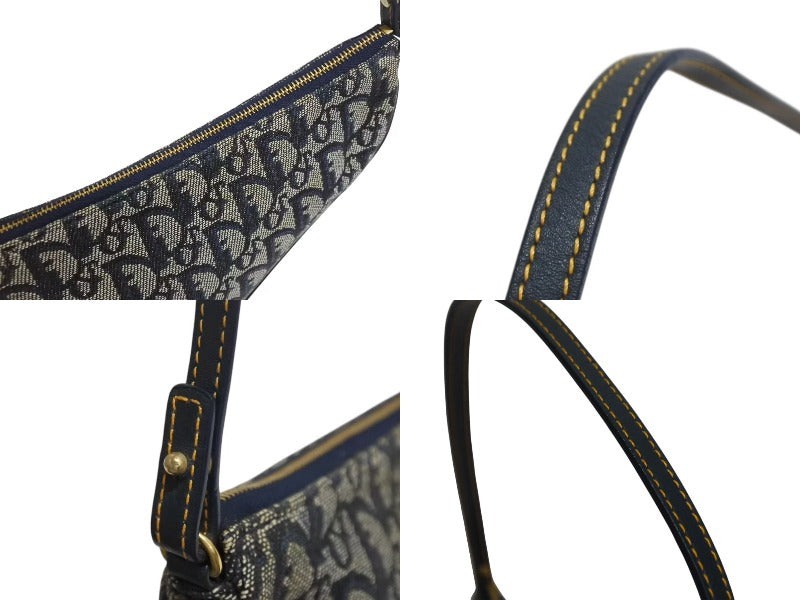 極美品 Christian Dior クリスチャンディオール トロッター サドルバッグ ワンショルダーバッグ サドルポーチ ネイビー 中古 4b002479