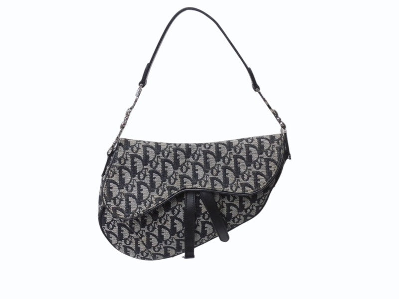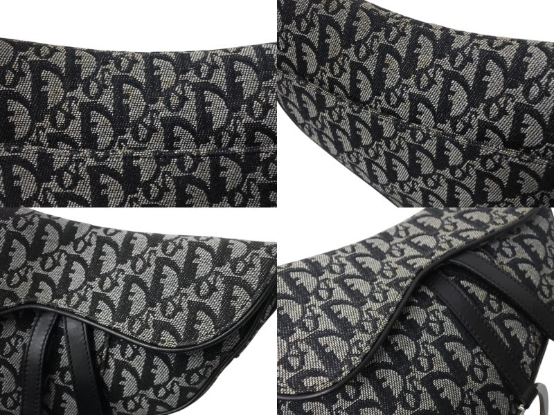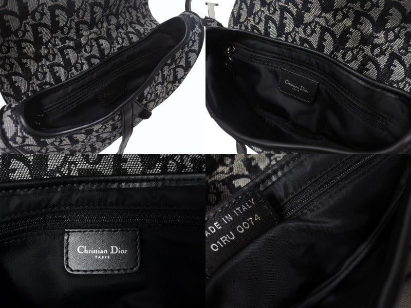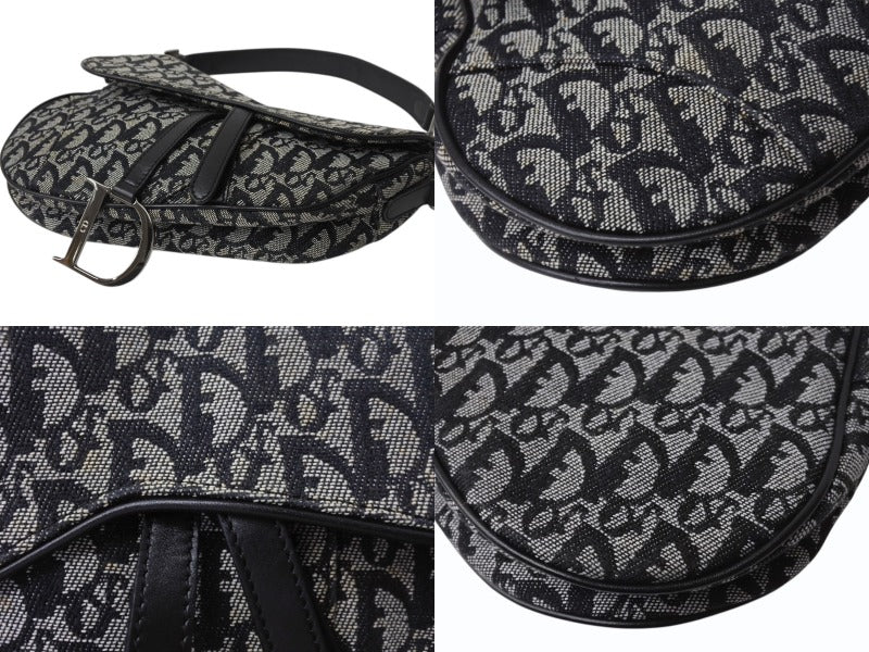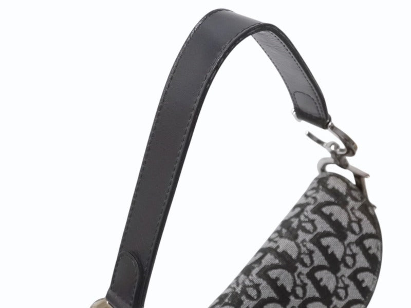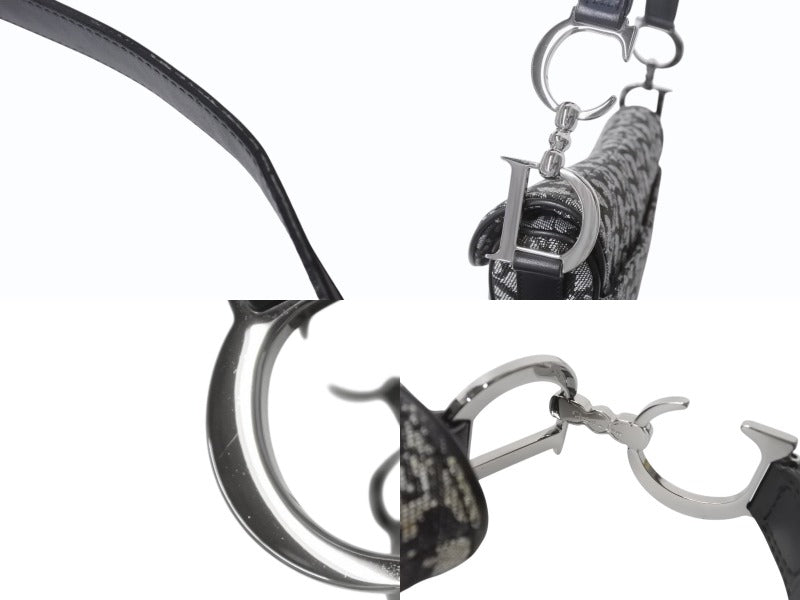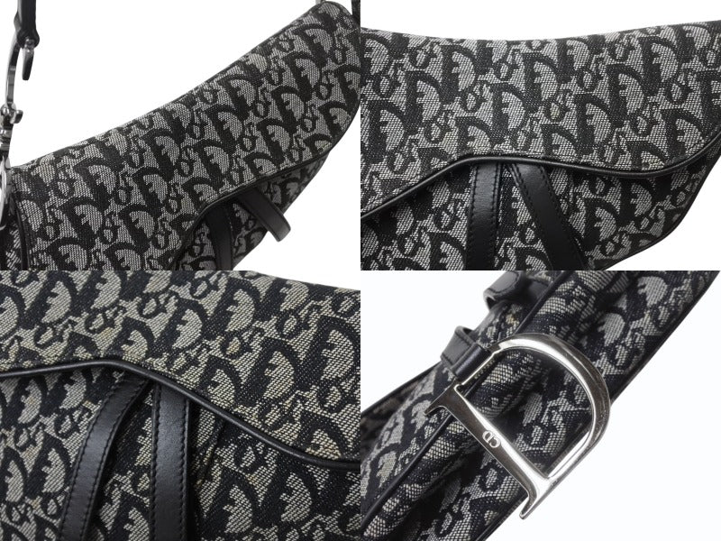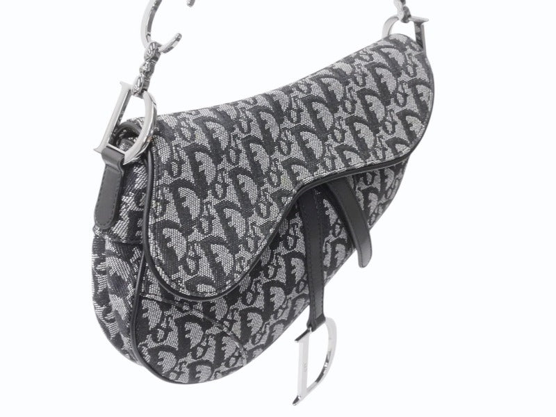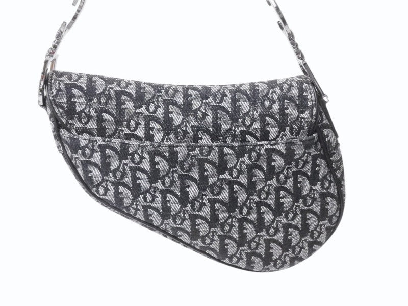 極美品 Christian Dior クリスチャンディオール トロッター サドルバッグ ブラック ガリアーノ期 シルバー金具 ブラック ワンショルダー ロゴ 中古 4b003266