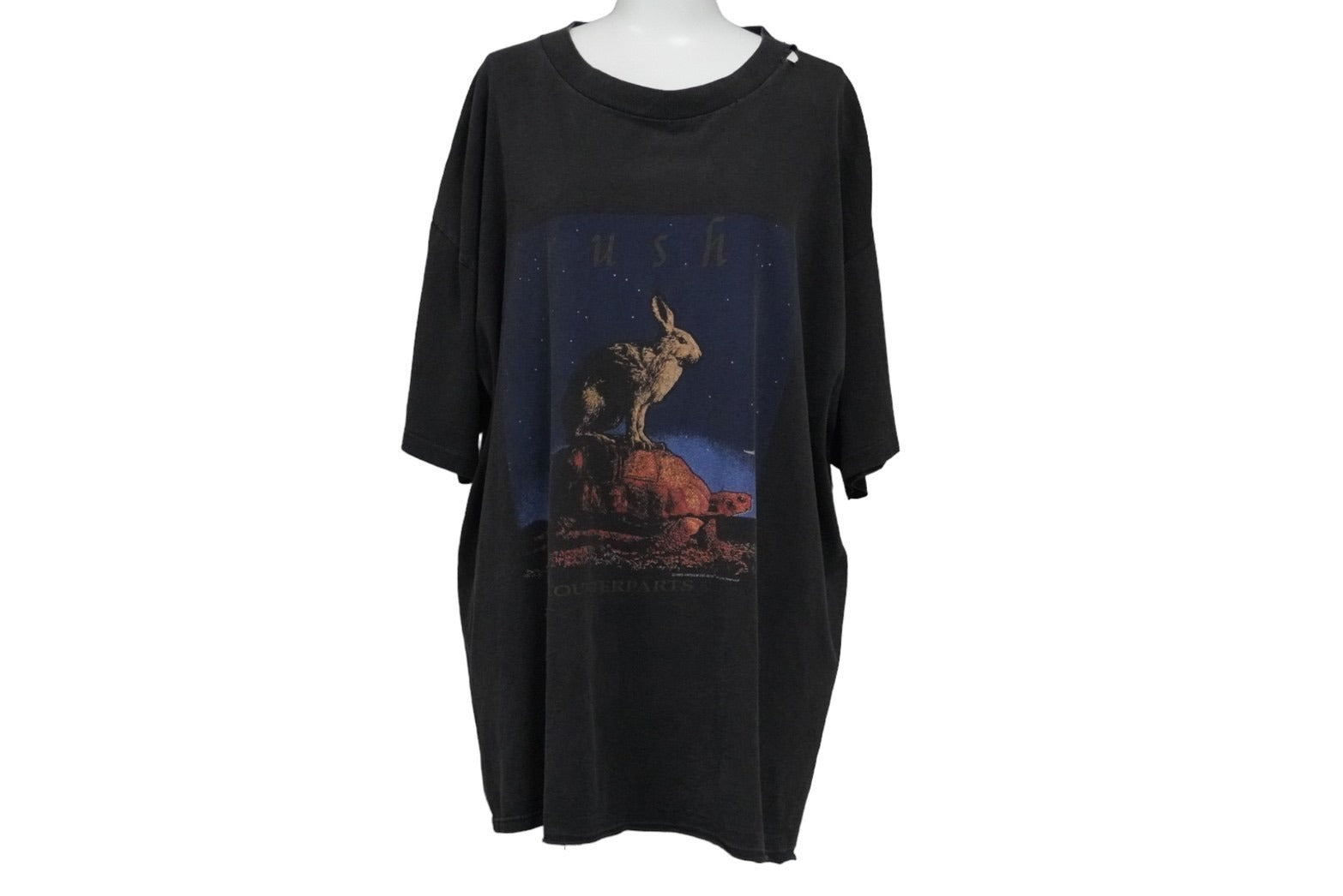 RUSH COUNTERPARTS ラッシュ 90s ウサギとカメ 半袖Tシャツ ブラック プリント ヴィンテージ 動物 サイズXL 中古 35571