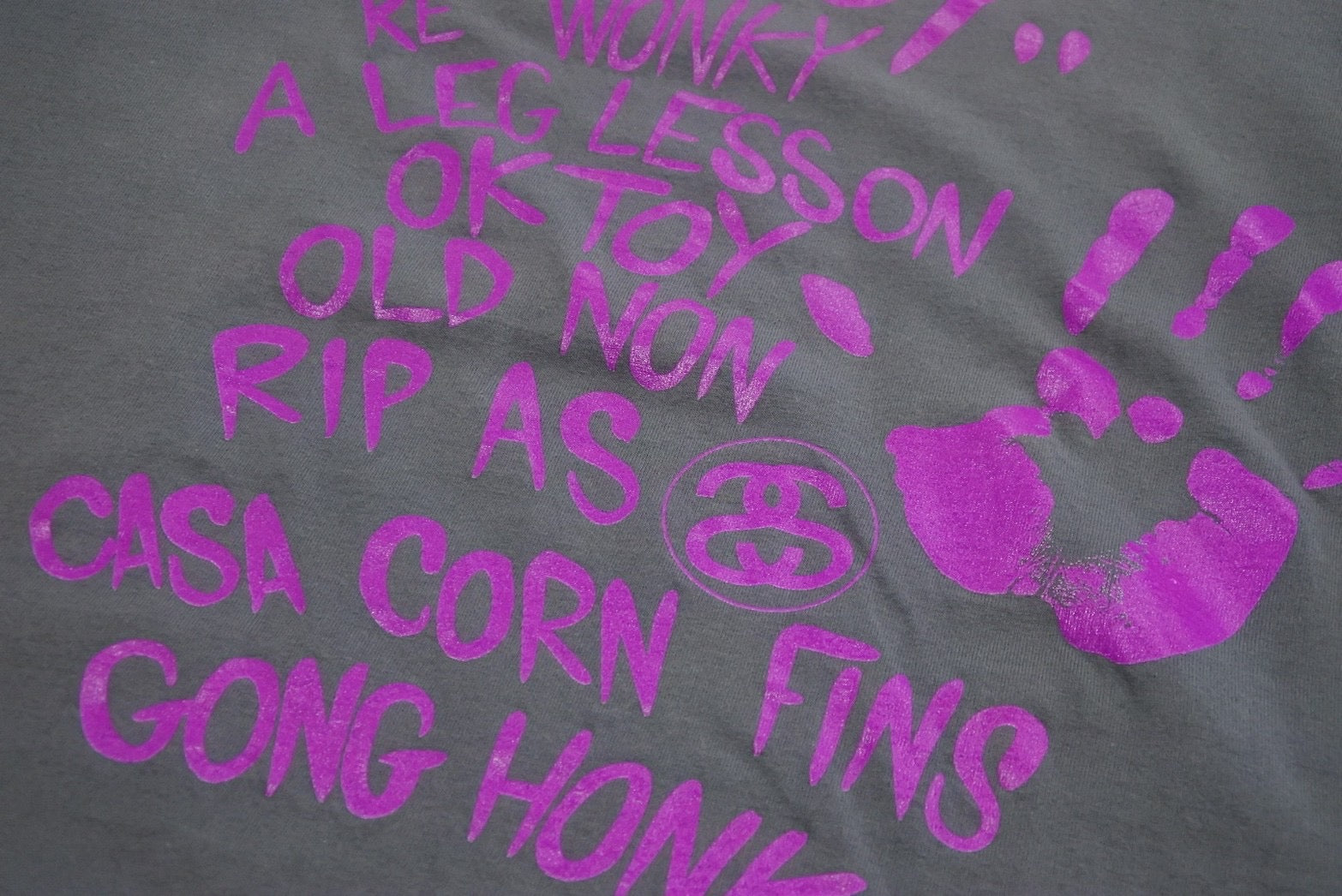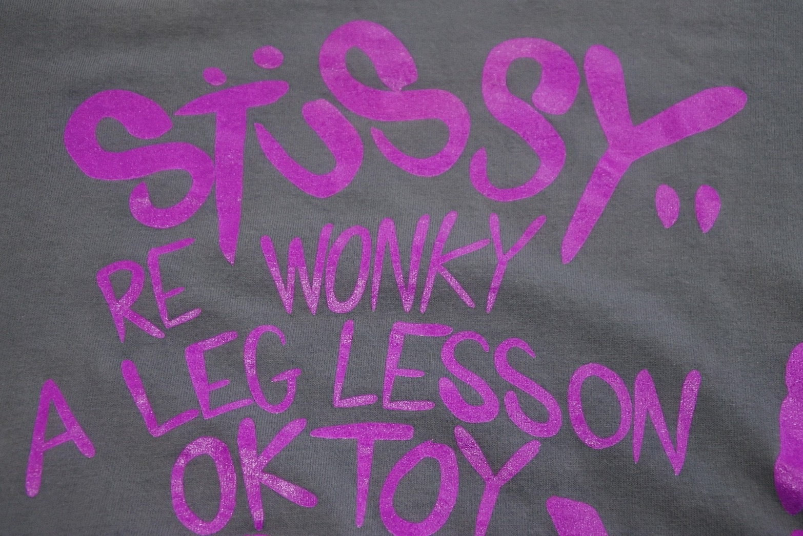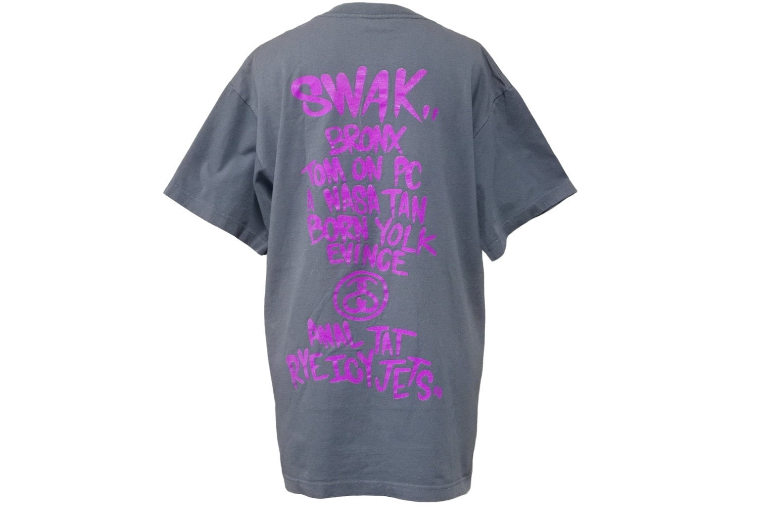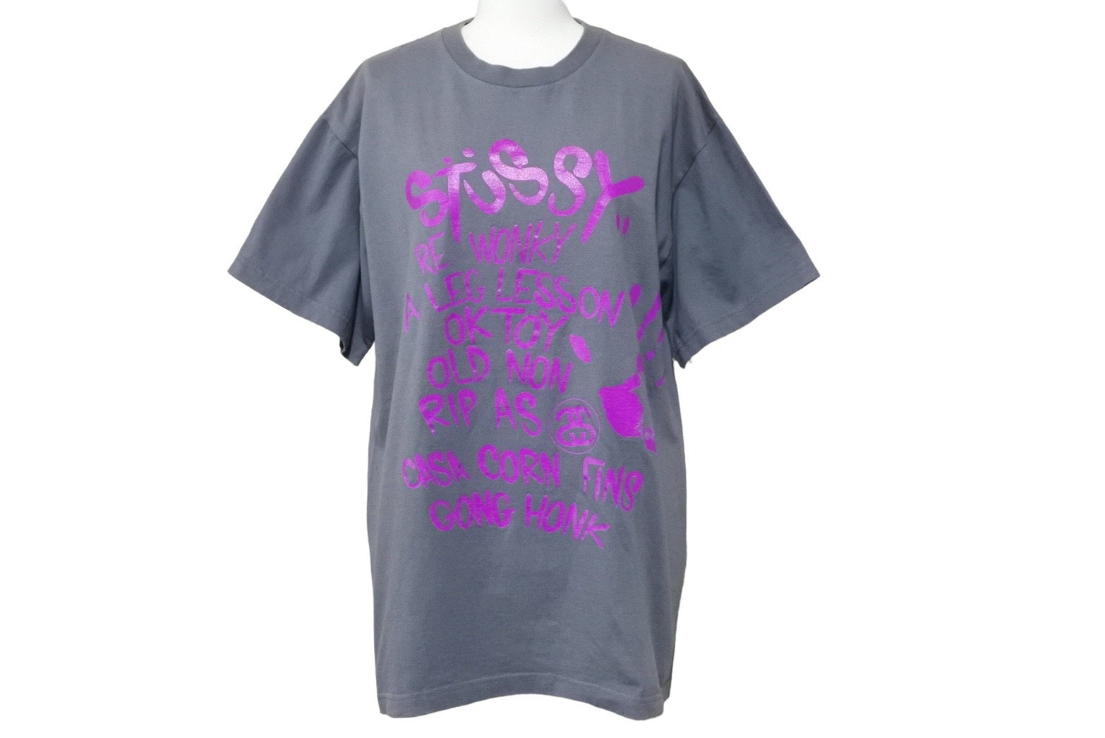 STTUSY ステューシー 半袖Tシャツ シルク コットン グレー パープル M 美品 中古 47667