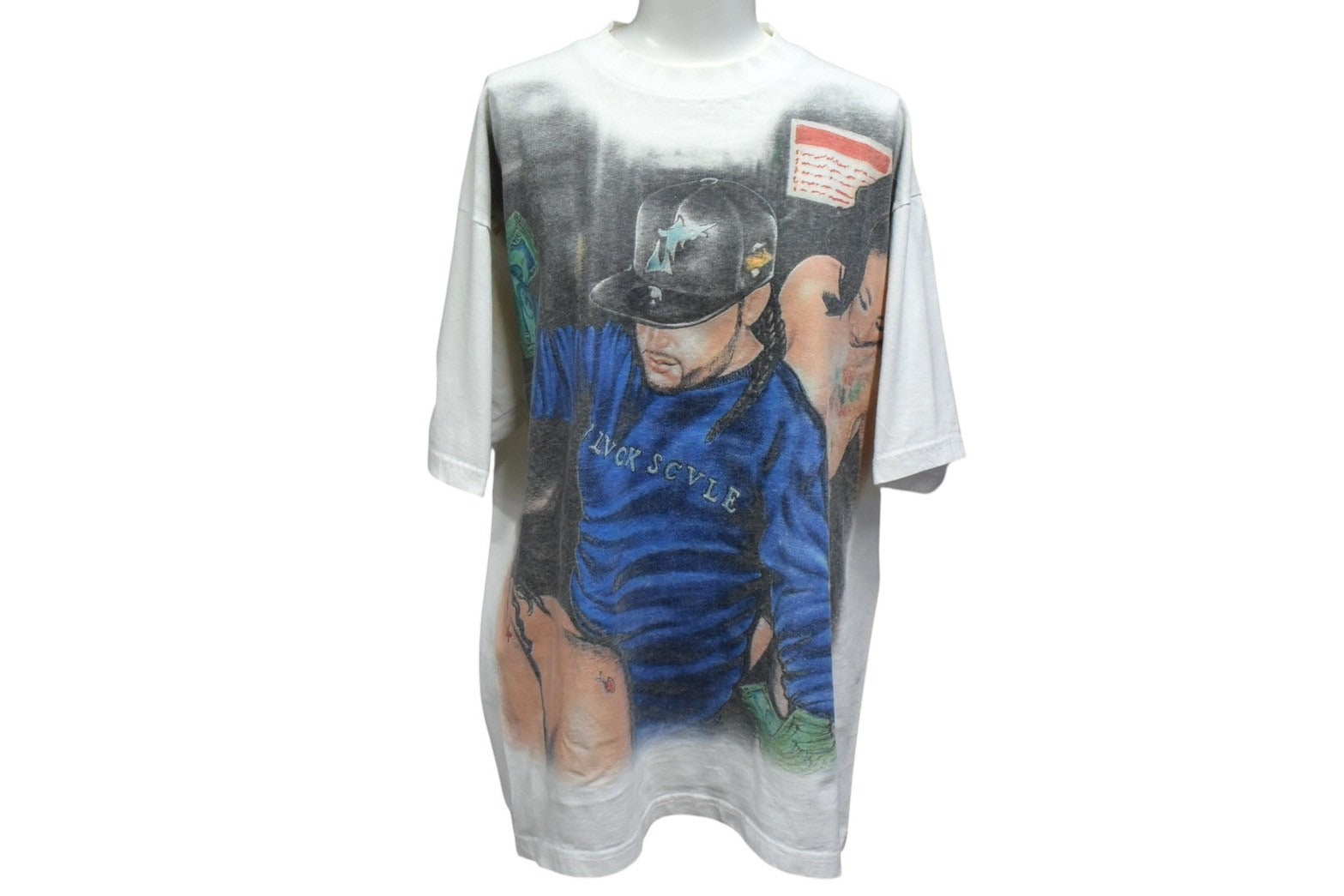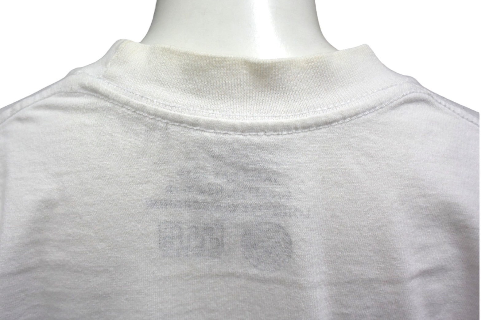 首ヨレあり。首元、脇に黄ばみあり。 首リブに少々伸びあり。毛羽立ちあり。中古品としてご使用頂ける状態です。