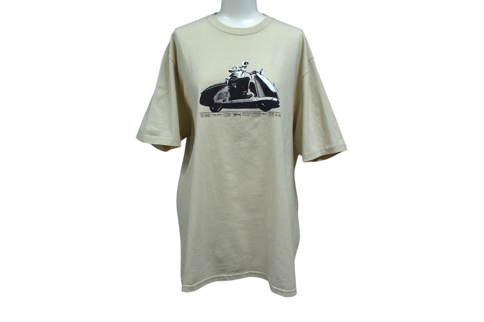 スカルスクーターや様々なショーンフォントのブランドロゴのグラフィックが特徴的な半袖Tシャツです。シンプルなデザインで様々なスタイリングに合わせていただけます。