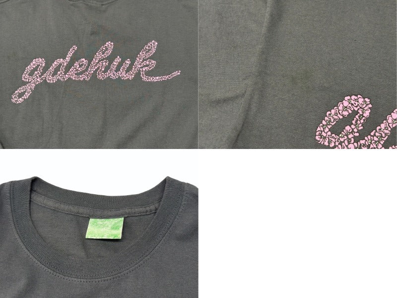 GOOD ENOUGH グッドイナフ G Logo 刺繍 フラワー柄 バックプリント 半袖Tシャツ ロゴ 90s グレー サイズM コットン 美品 中古 4b001427