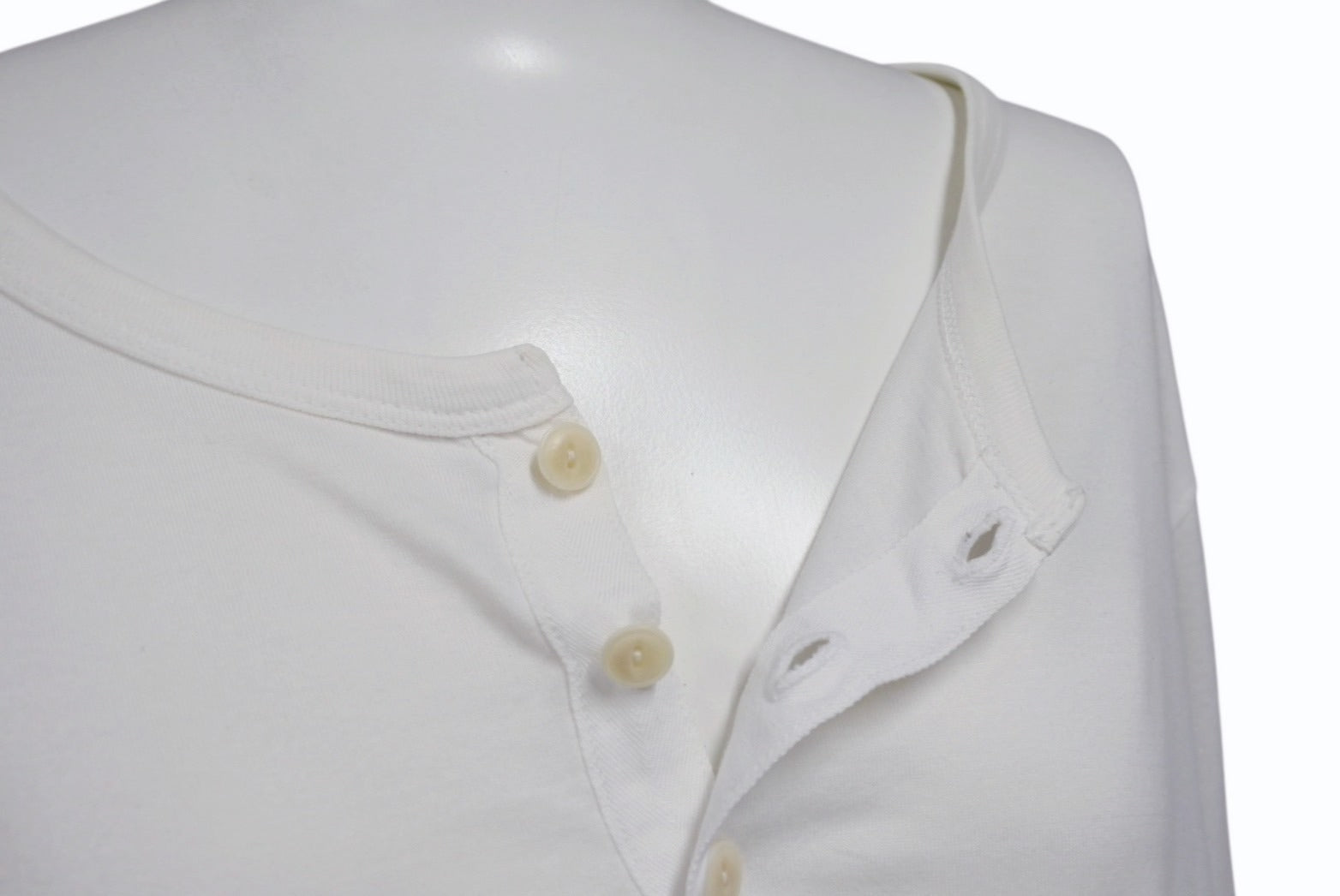 半袖Tシャツには珍しいヘンリーネックのモデルです。