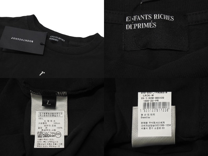 新品未使用 ENFANTS RICHES DEPRIMES アンファン リッシュ デプリメ 半袖Tシャツ コットン ブラック サイズL 中古 4b001493