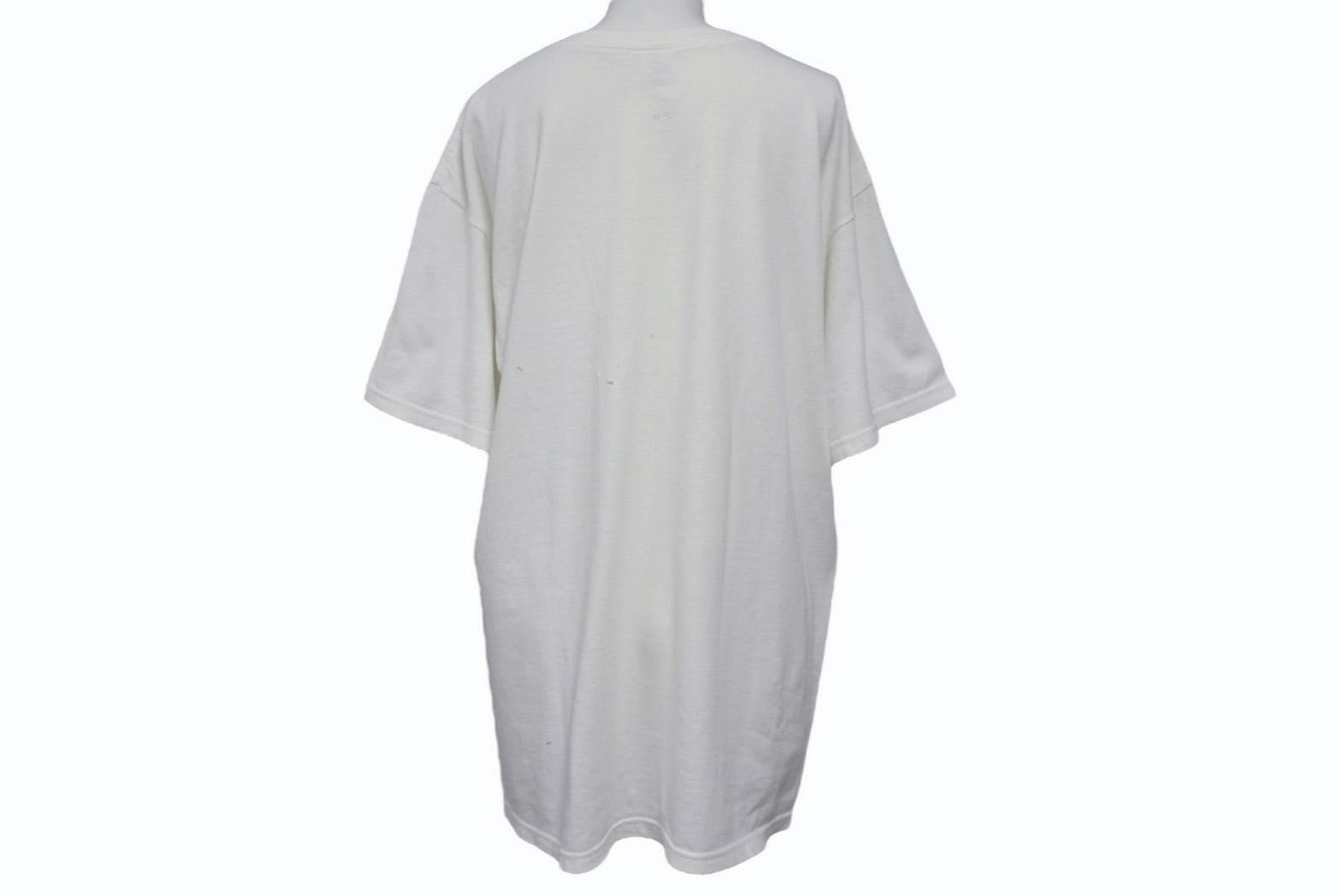 背面にシミ、汚れあり。首元黄ばみあり。タグにキレあり。フロントに少々シミあり。