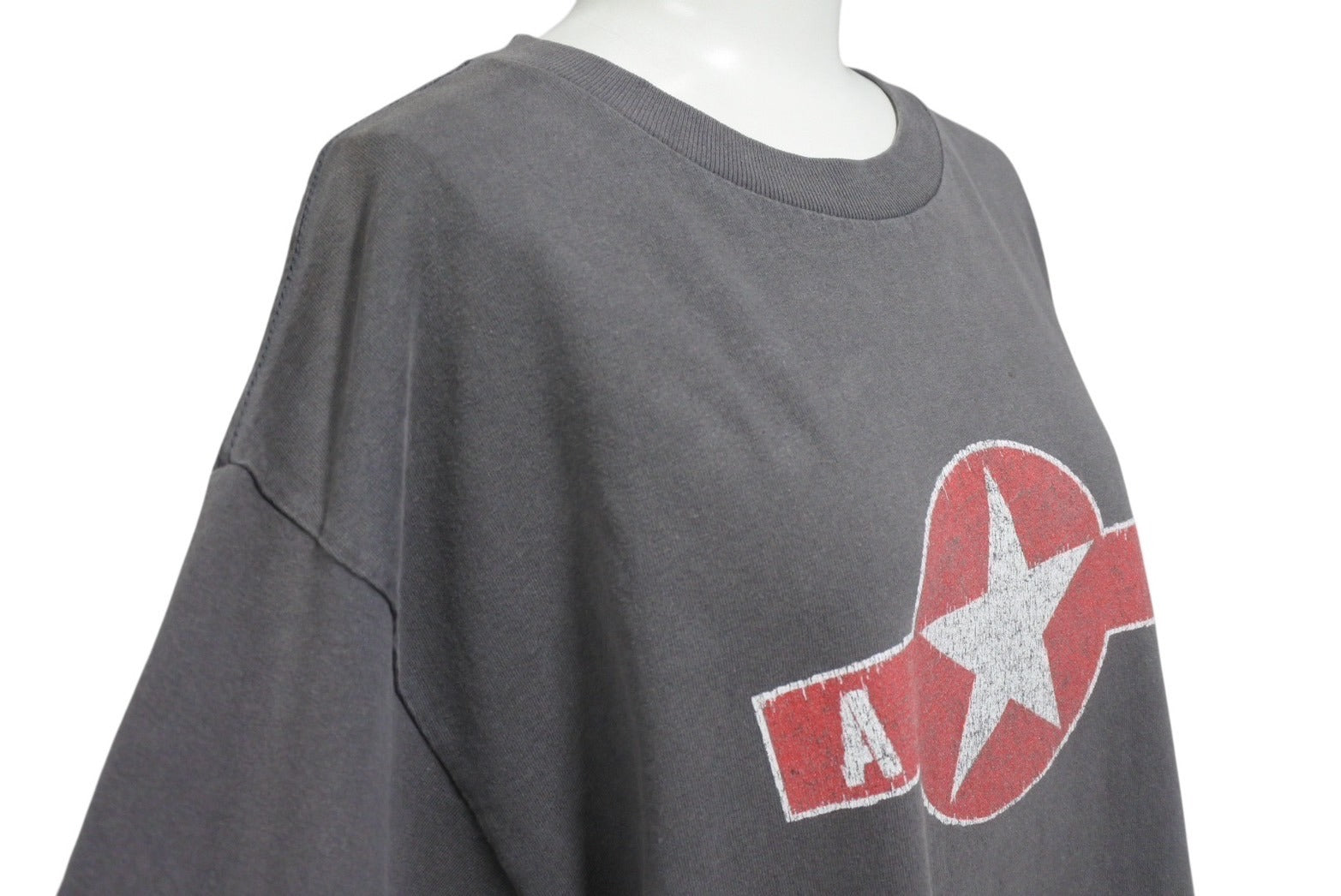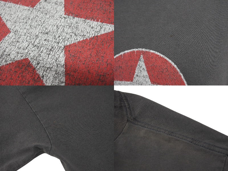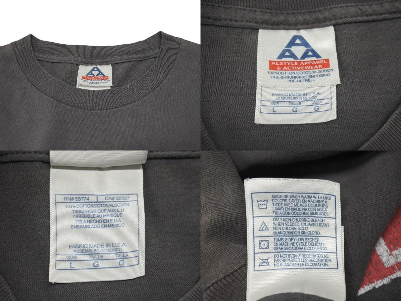 色褪せ、ヤケあり。脇にほつれあり。プリントにかすれ、ひび割れあり。フロント上部に一部シミあり。背面リブ部分に一部ピンホールあり。その他使用感の少ない状態です。