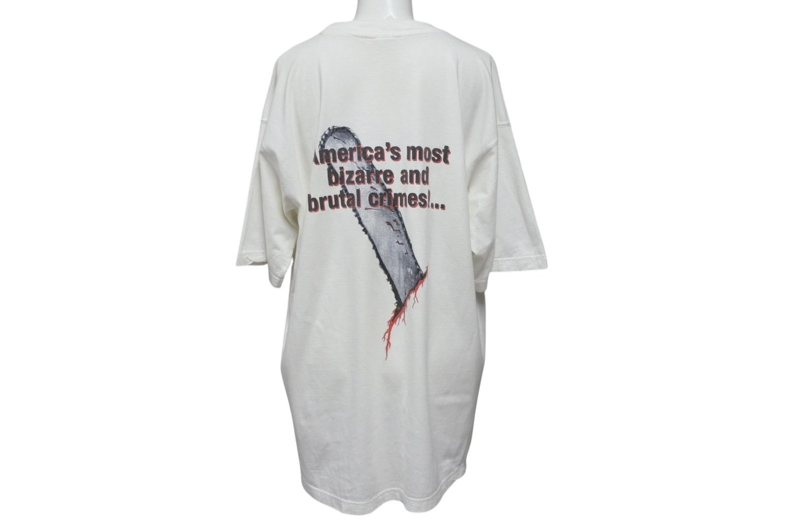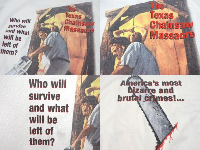 1974年公開のホラー映画"悪魔のいけにえ"。劇場公開時のポスターにもなっているアートワークがフロントにプリントされています。1997年コピーライトあり。
