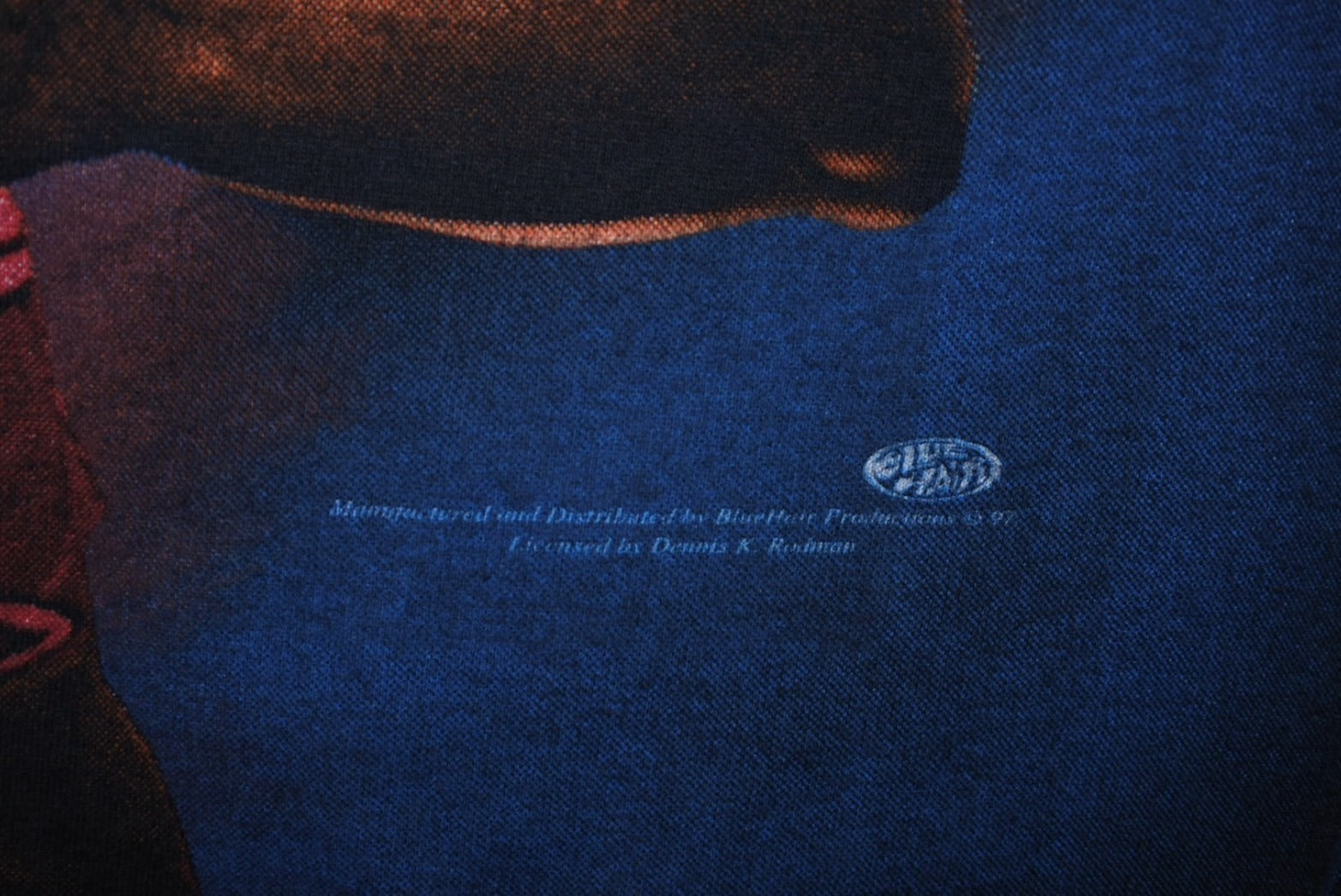 元NBAのデニスロッドマンが両面全体にプリントされた存在感のあるヴィンテージTシャツです。