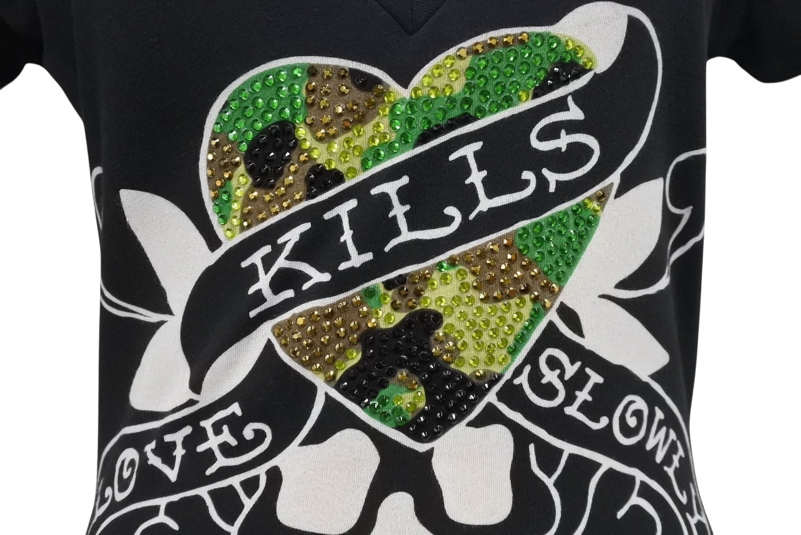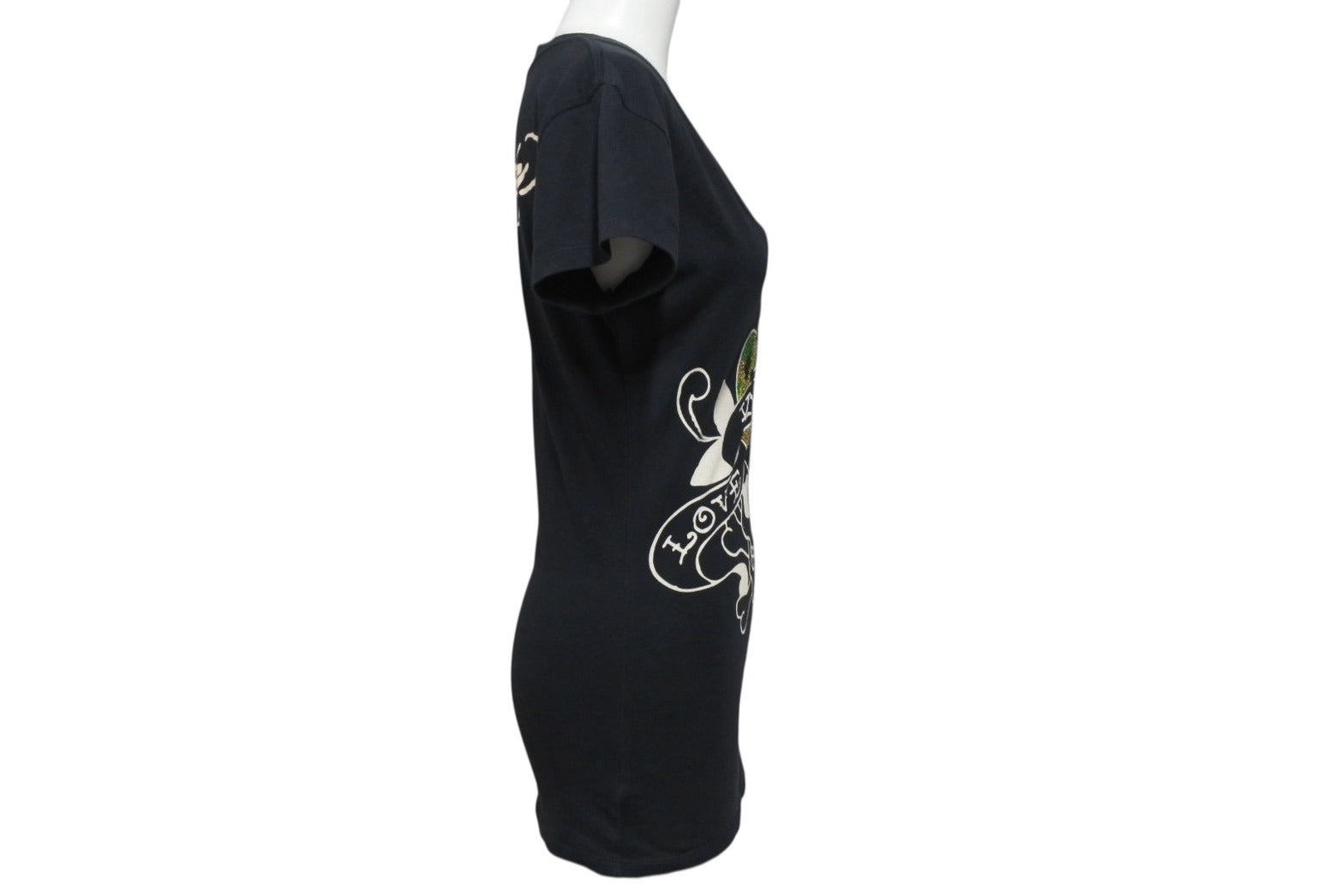 Ed Hardy エドハーディ LOVE KILLS SLOWLY 半袖Tシャツ サイズXS コットン ラインストーン ブラック 美品 中古 4b002005