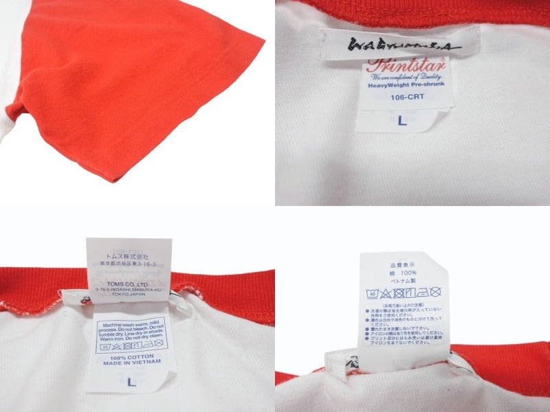 WAGYU MAFIA 和牛マフィア TERUZUSI 照寿司 リンガーTコットン ホワイト レッド サイズL 美品 中古 4b002506