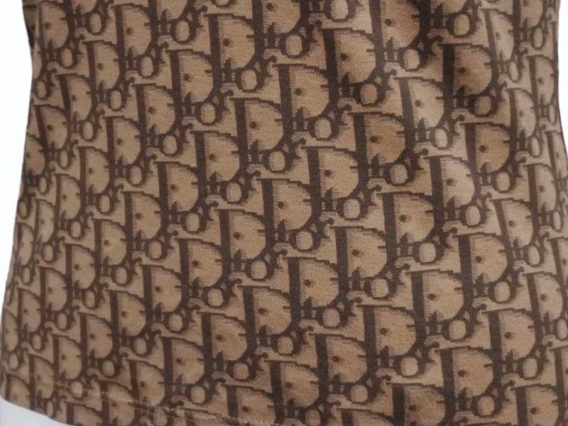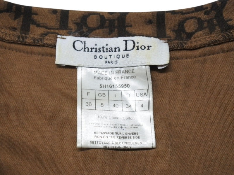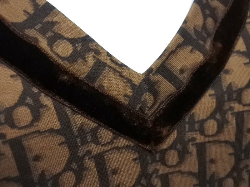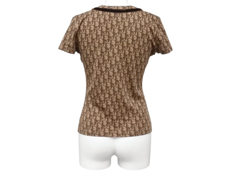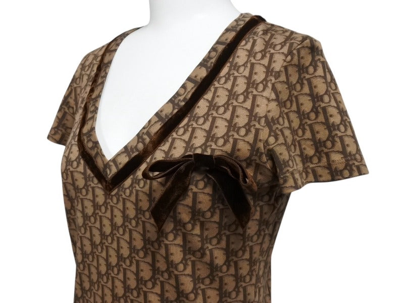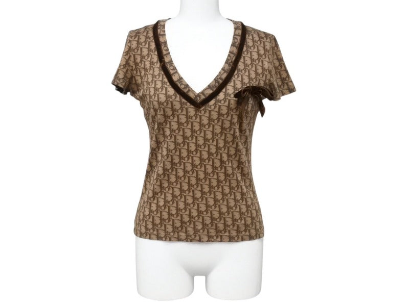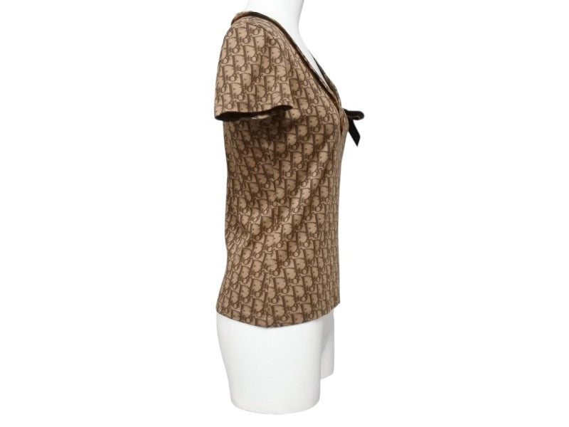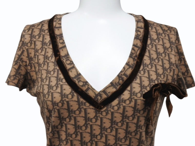 CHRISTIAN DIOR クリスチャンディオール ガリアーノ期 トロッター Vネック リボン 半袖Tシャツ コットン ブラウン サイズ36 美品 中古 4b004121