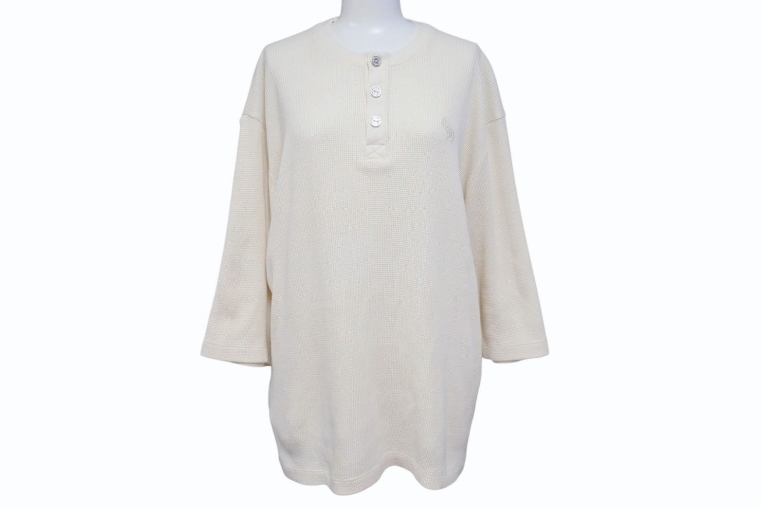 CHROME HEARTS クロムハーツ サーマル 半袖Tシャツ サイズL アイボリー コットン シルバ−925 CHロゴ刺繍 美品 中古 4b005504