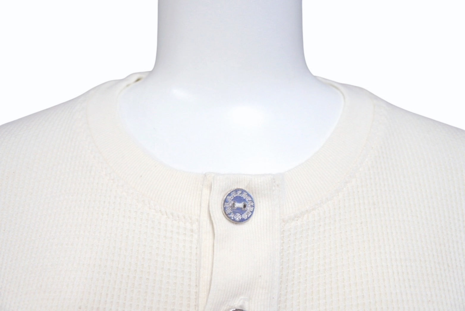 サーマル素材の半袖Tシャツです。シルバーボタンに入った刻印やCHロゴ刺繍などクロムハーツの魅力詰まったアイテムです。