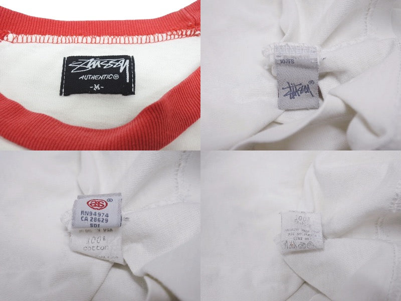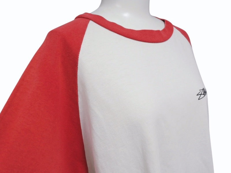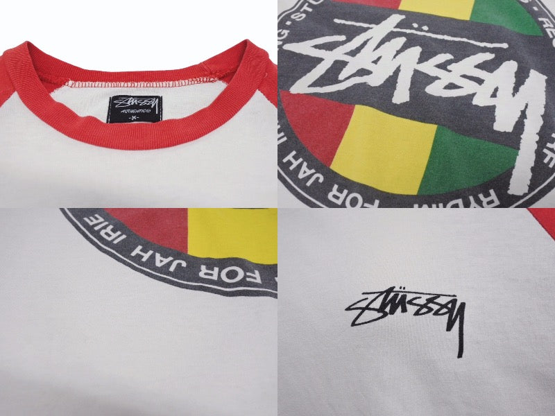 STUSSY ステューシー ラスタロゴプリント ラグラン袖 Tシャツ カットソー ホワイト レッド コットン サイズM 美品 中古 4b005683