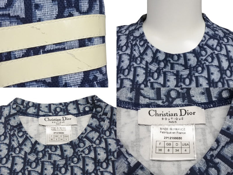 CHRISTIAN DIOR クリスチャンディオール 半袖Tシャツ 2P12155050 サイズ36 トロッター柄 ネイビー ガリアーノ期 美品 中古 4b007615