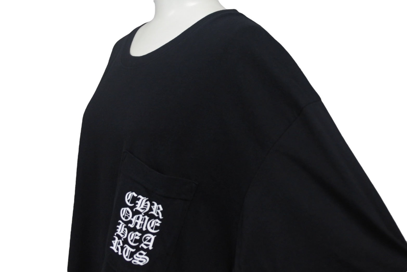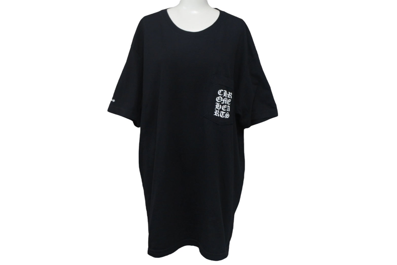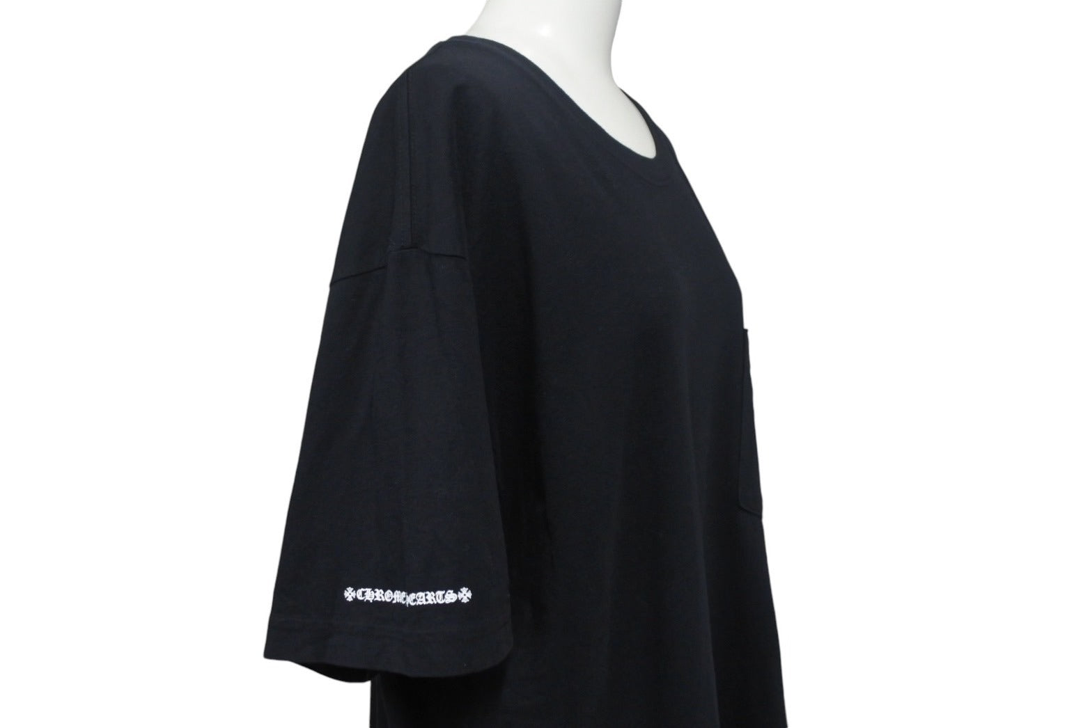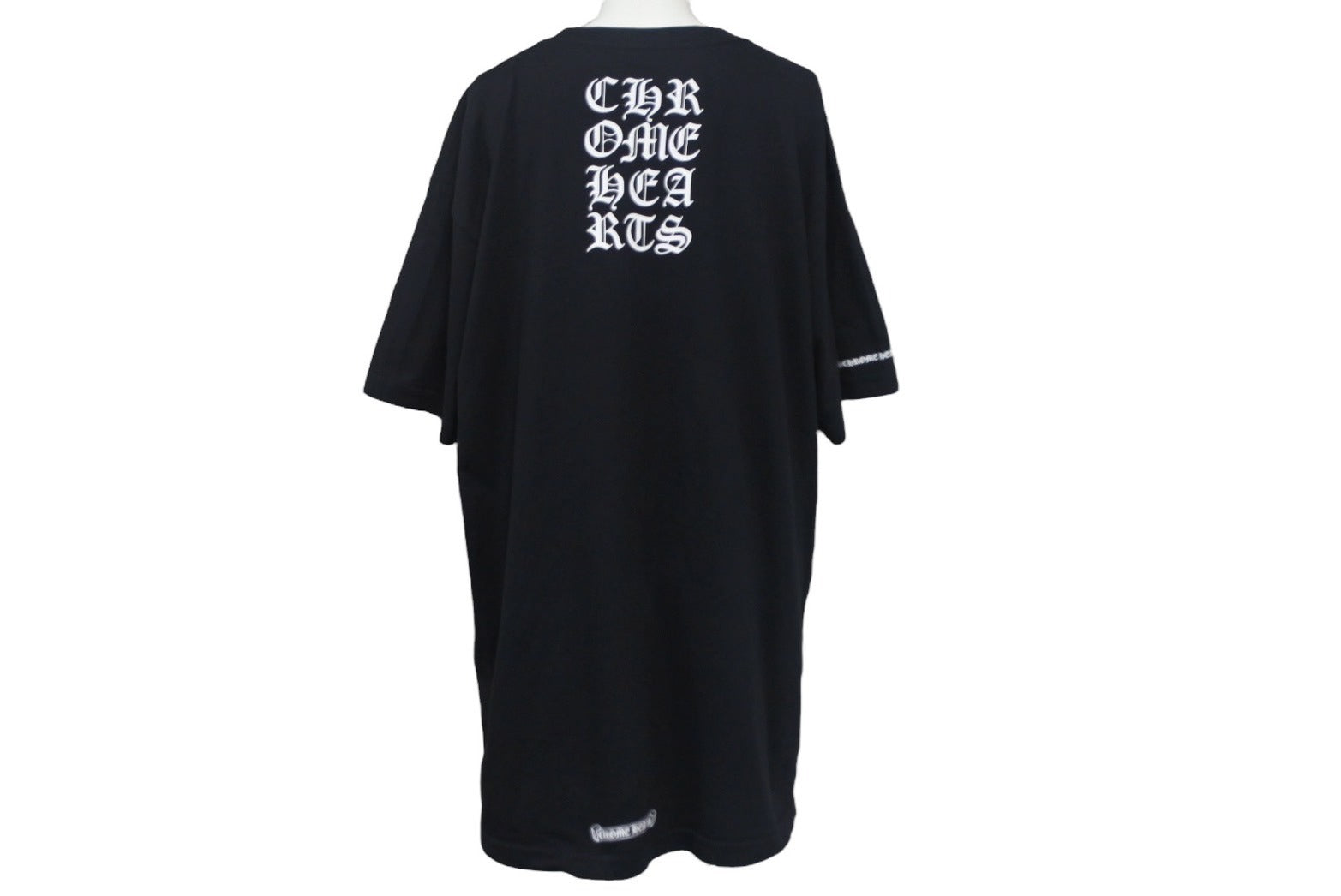 極美品 CHROME HEARTS クロムハーツ Vertical Logo 半袖Tシャツ サイズXL スクロールラベルロゴ ブラック コットン 中古 4c068721