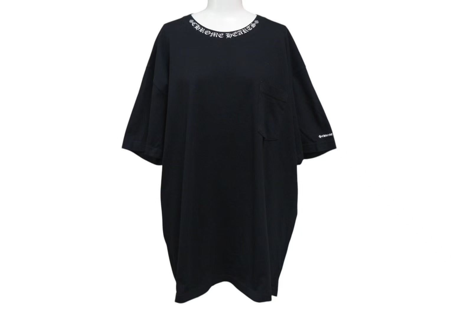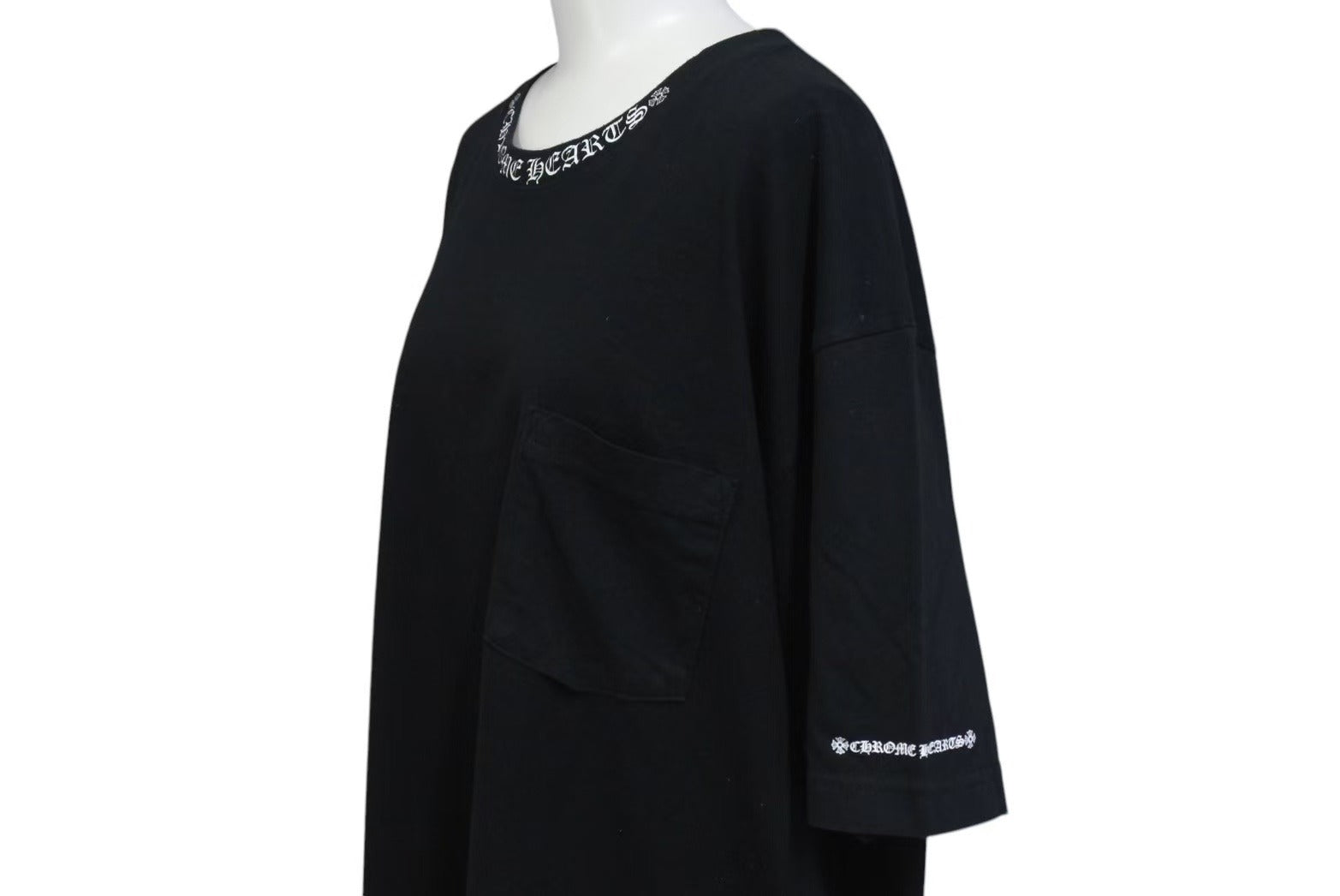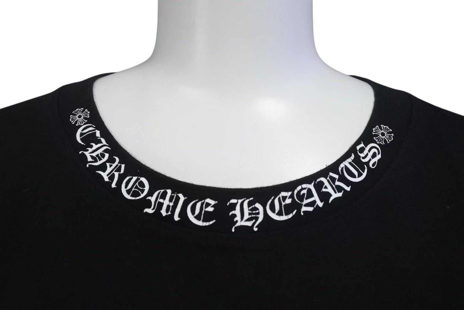 CHROME HEARTS クロムハーツ 半袖Tシャツ ネックロゴ クルーネック トップス 97729 コットン ブラック ホワイト XXL 美品 中古 4c073302