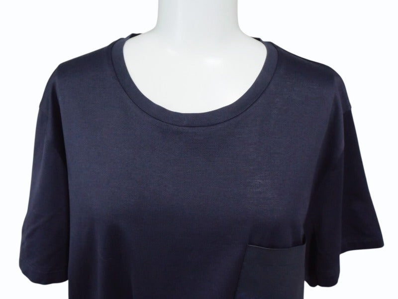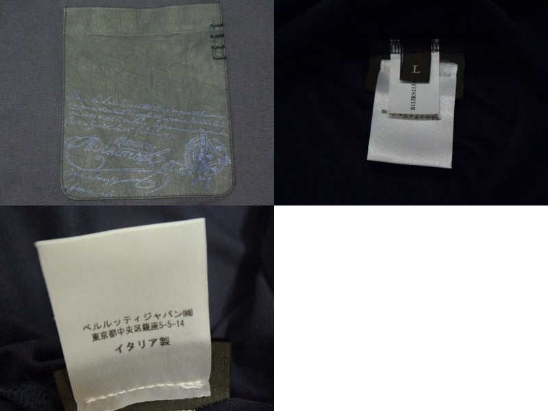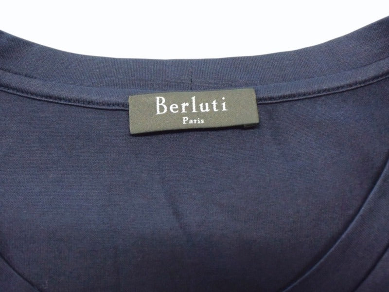 Berluti ベルルッティ 半袖Tシャツ 134178 サイズL カリグラフィーデザイン レザーポケット コットン ネイビー 美品 中古 4c074625