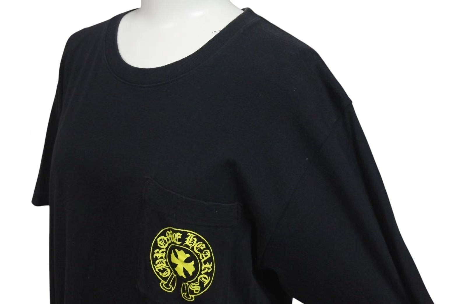 CHROME HEARTS クロムハーツ 半袖Tシャツ CH T-SHRT フロントポケット U.S.A製 コットン ブラック イエロー サイズM 美品 中古 4c075274