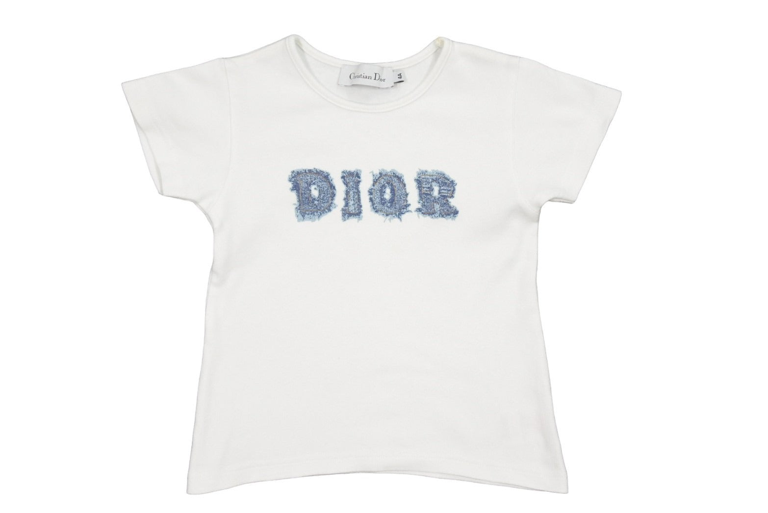 Christian Dior クリスチャンディオール 半袖Tシャツ DIORロゴ コットン ホワイト ブルー サイズ4A キッズ 美品 中古 51702