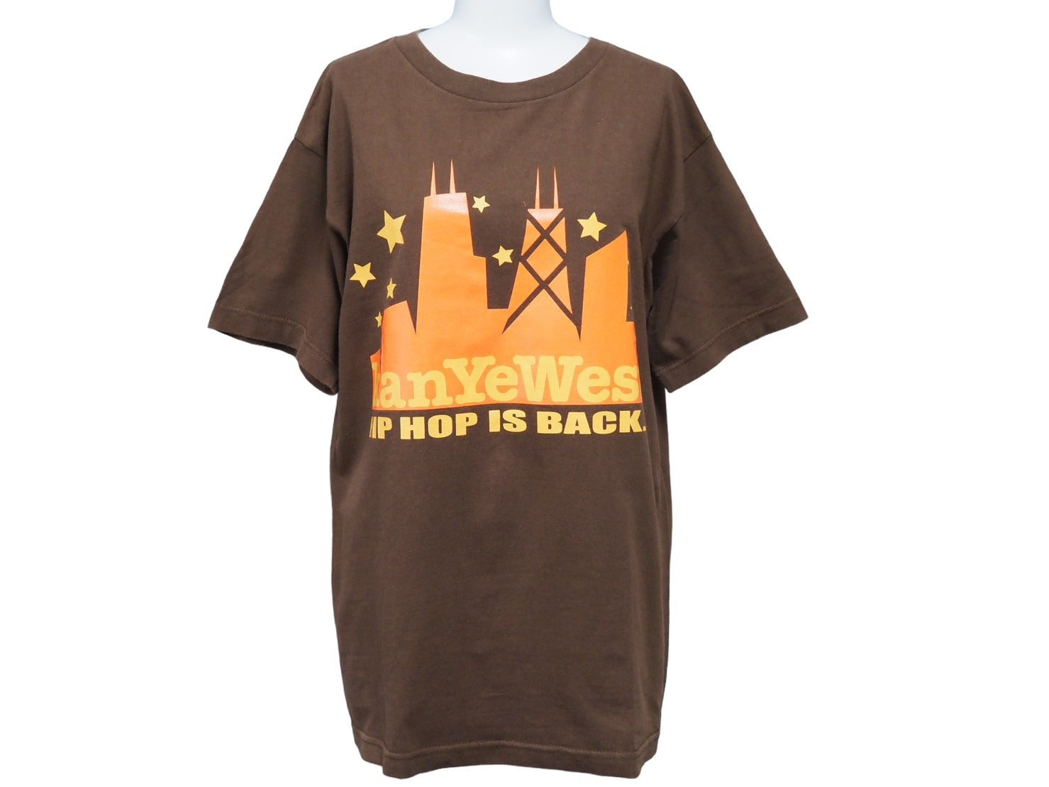 フロントに建物と星、文字をプリントした個性あるデザインのTシャツです。