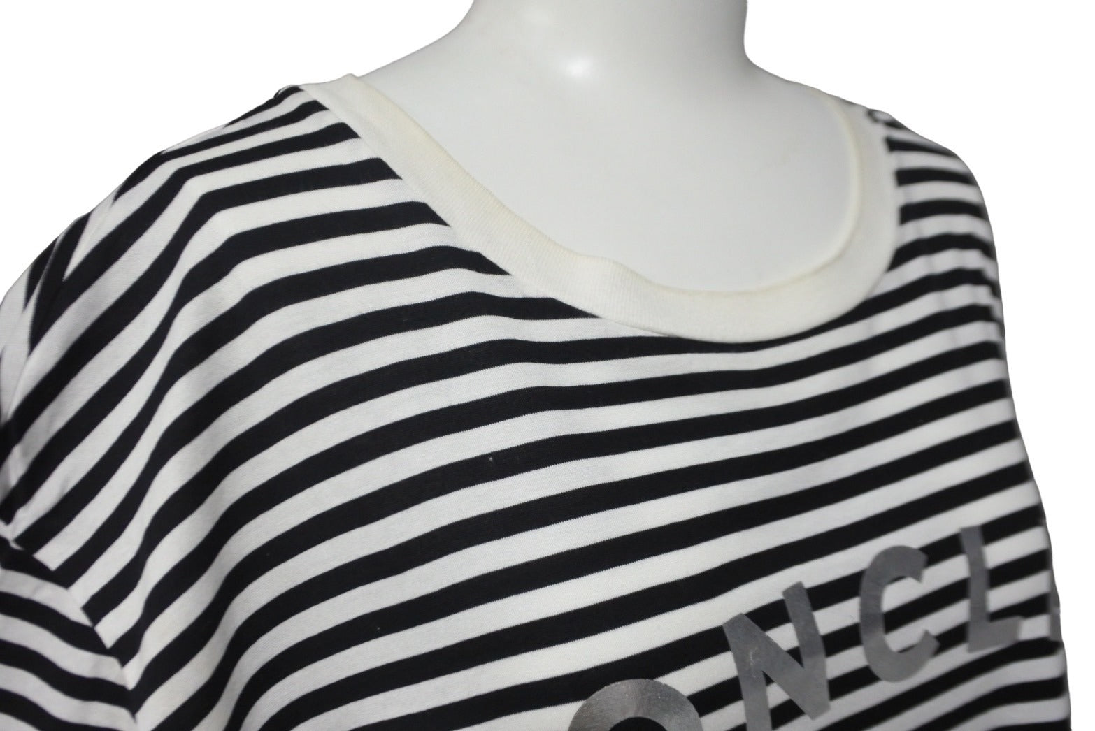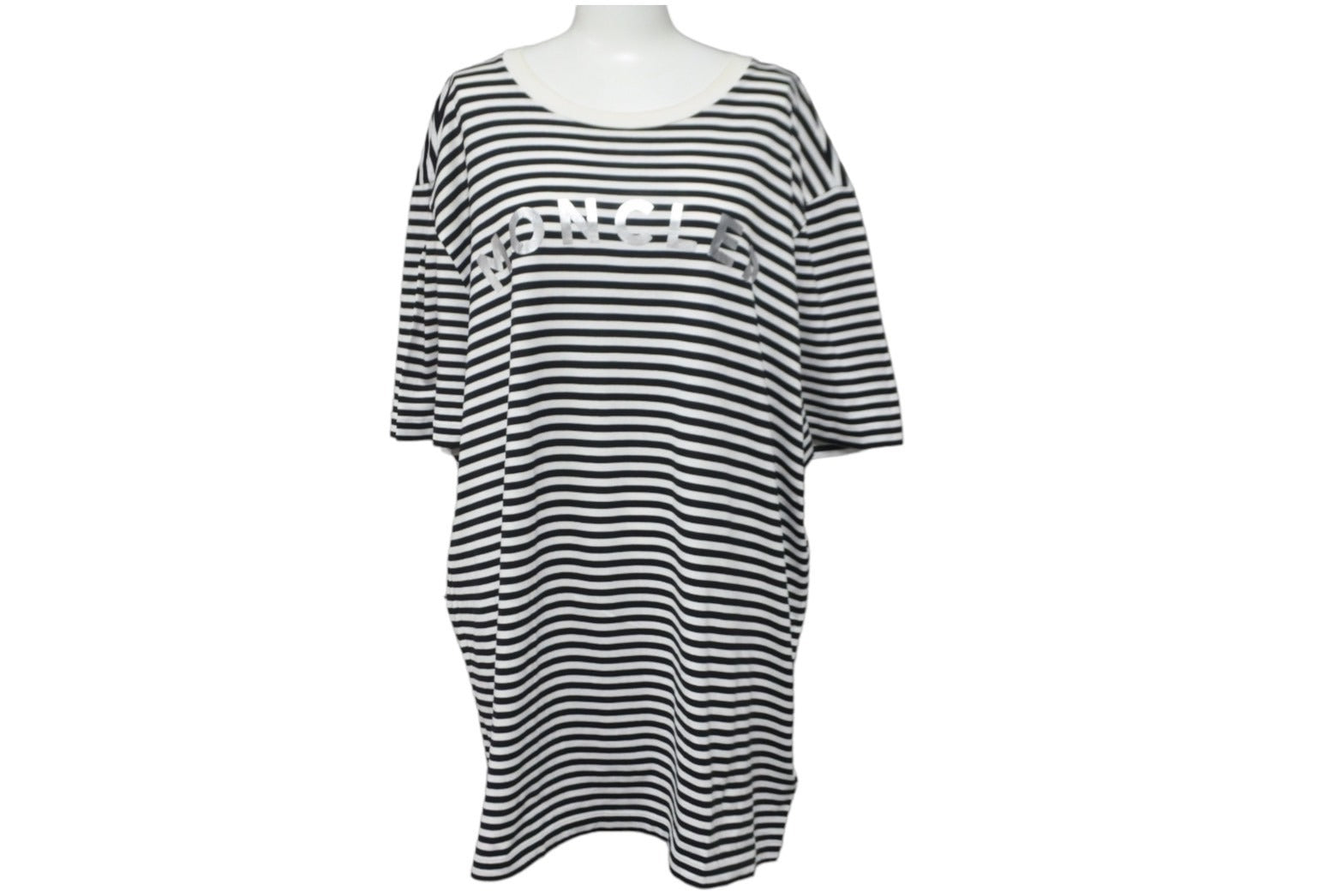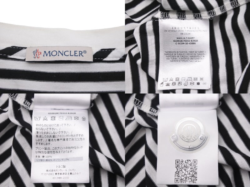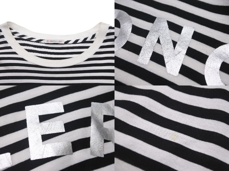 MONCLER モンクレール ボーダー ロゴ 半袖Tシャツ ブラック ホワイト シルバー トップス G10918C7E010 829GR 良品 XL 中古 55615