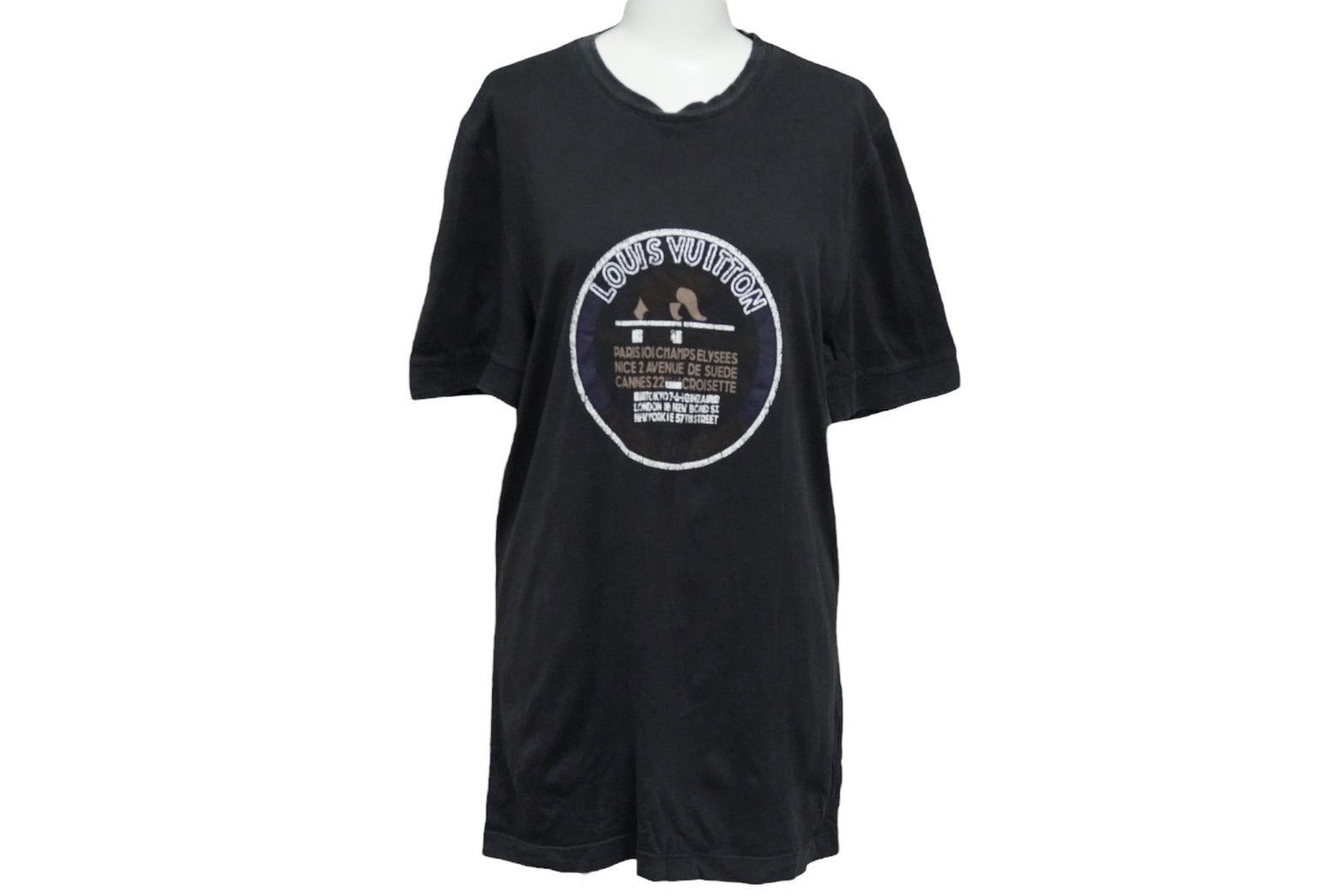 LOUIS VUITTON ルイヴィトン 半袖Tシャツ サイズM プリント ブラック コットン シルク RM122M 良品 中古 61672