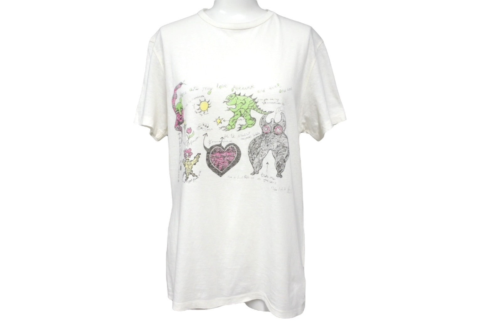 Christian Dior クリスチャンディオール 半袖Tシャツ 18SS サイズXS ホワイト コットン リネン プリント 8E23503TP428 美品 中古 64710