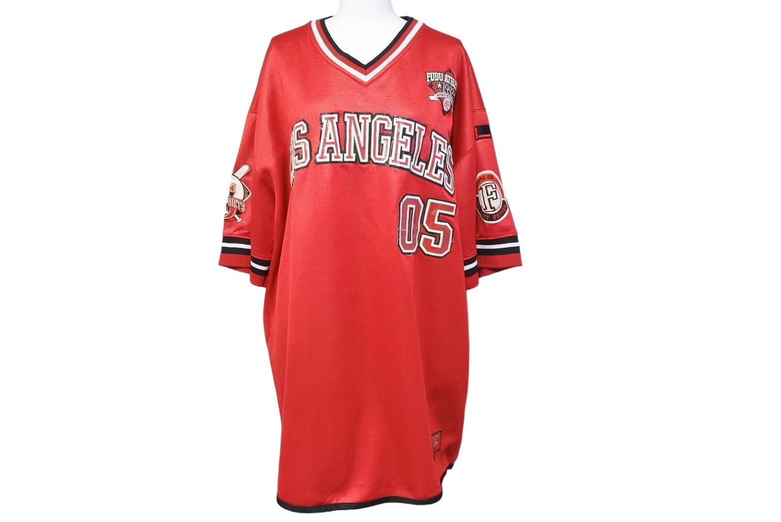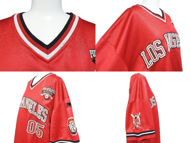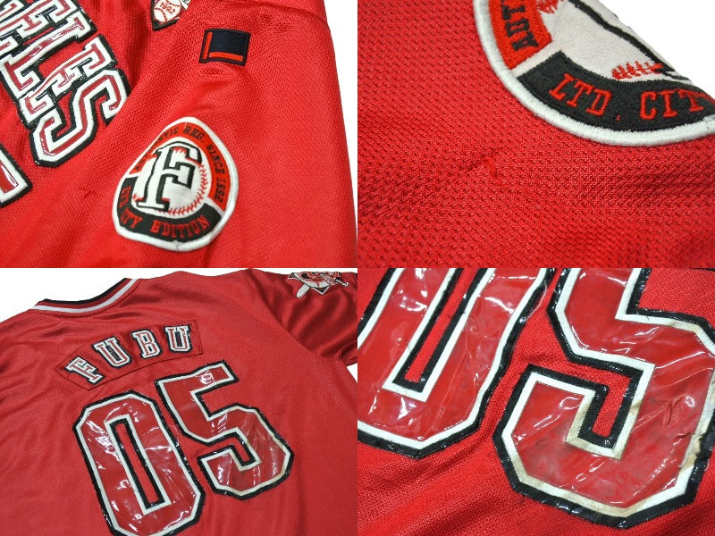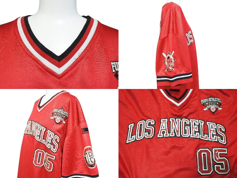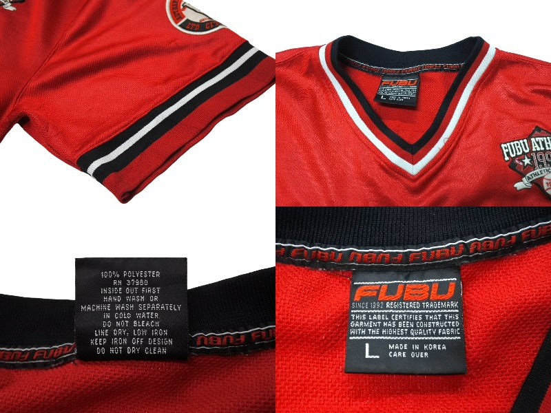 FUBU フブ ゲームシャツ LOS ANGELES アスレティックリーグ ヴィンテージ 1992 ポリエステル レッド ブラック L 美品 中古 67516