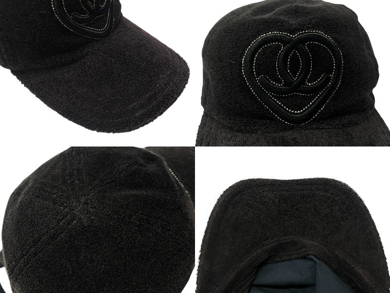 CHANEL シャネル ハートココマーク パイル キャップ サイズM ブラック コットン ポリエステル Ian Connor 良品 中古 4b000785
