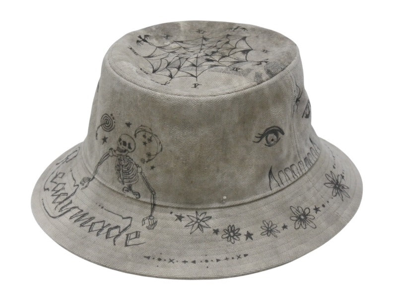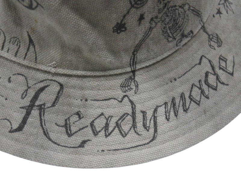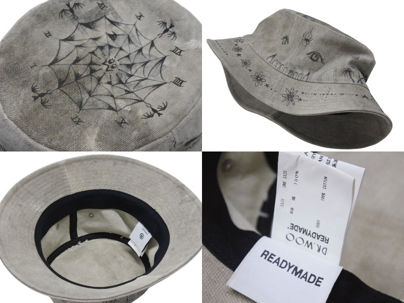 極美品 READYMADE×Dr. WOO レディメイド ドクターウー BUCKET HAT TATOO バケットハット 23AW REDW-CO-WH-00-00-03 グレー 中古 4b006738cfzs