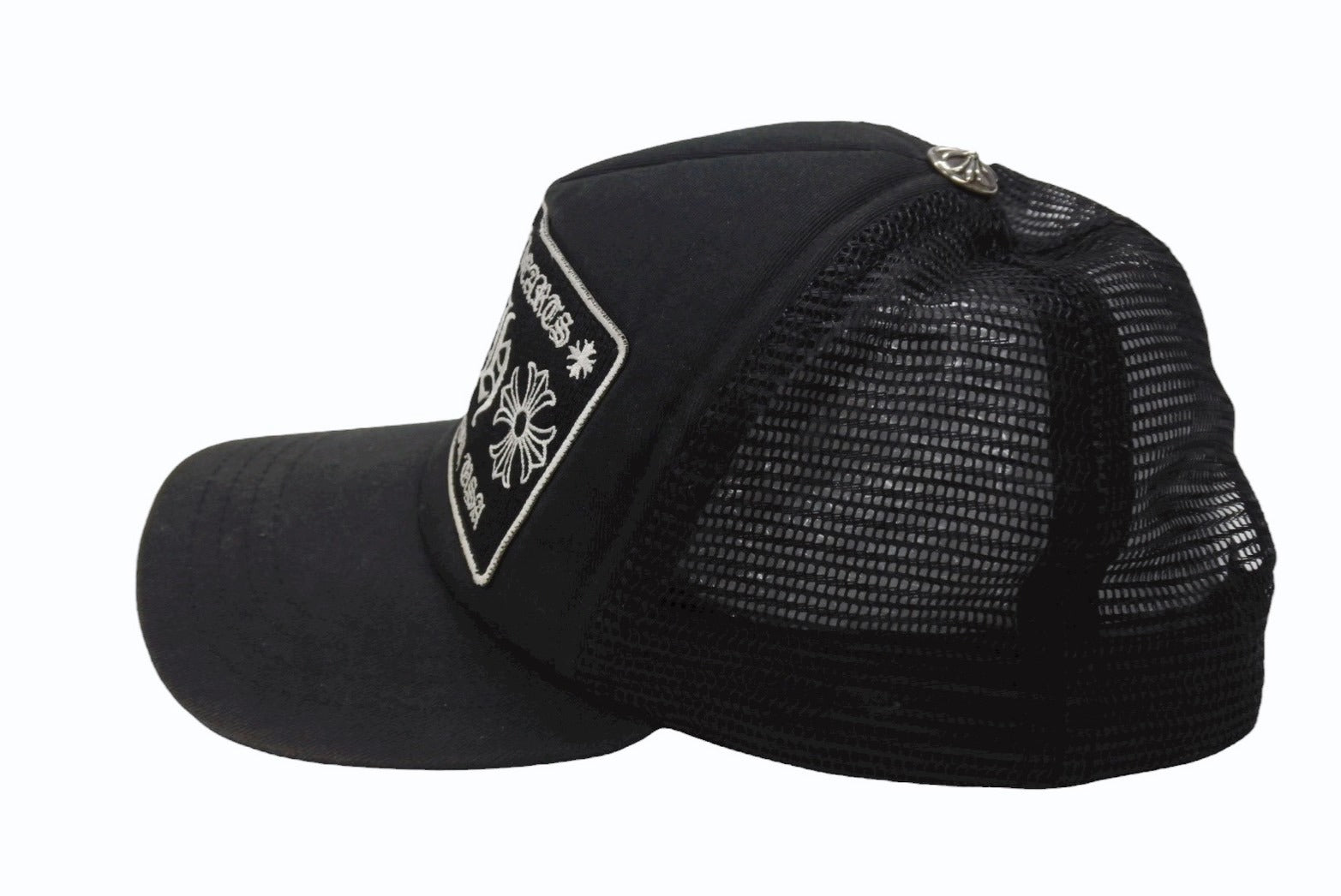CHROME HEARTS クロムハーツ トラッカーキャップ ハリウッド限定 CHロゴ刺繍 クロスボール シルバー 925 ブラック 良品 中古 4b006957