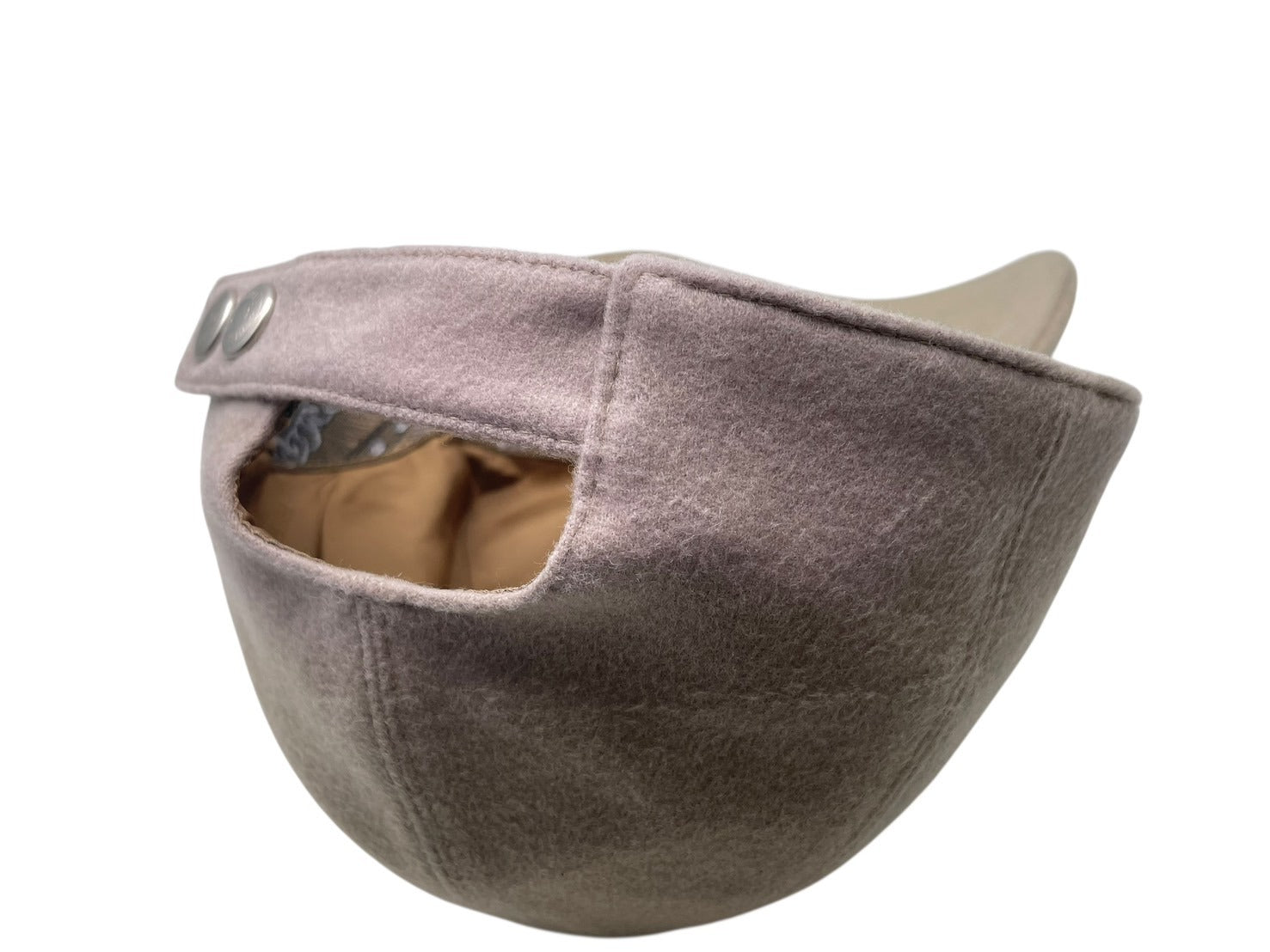 カシミヤの素材を使用しており、またアジャスター部分にはシルバーカラーのセリエボタンを使用するなどとても高級感が出ます。