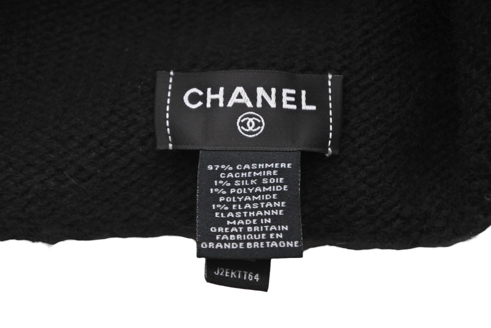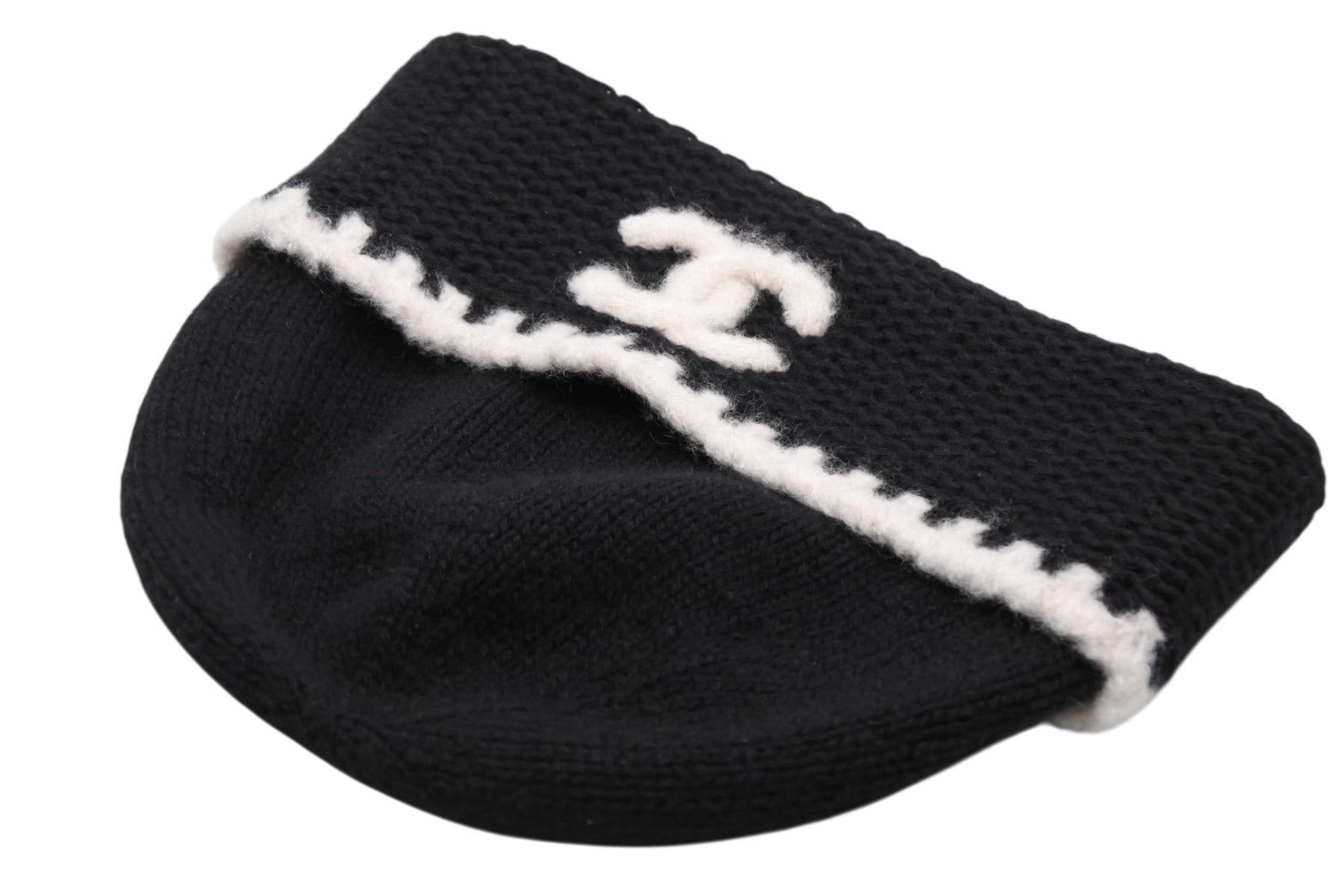 新品同様 CHANEL シャネル ニットキャップ ビーニー AA9203 ココマーク カシミヤ シルク ブラック アイボリー 中古 4b009985