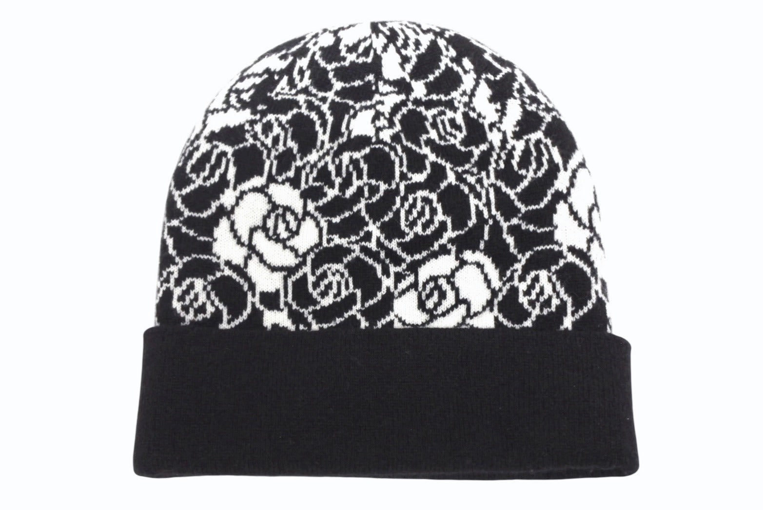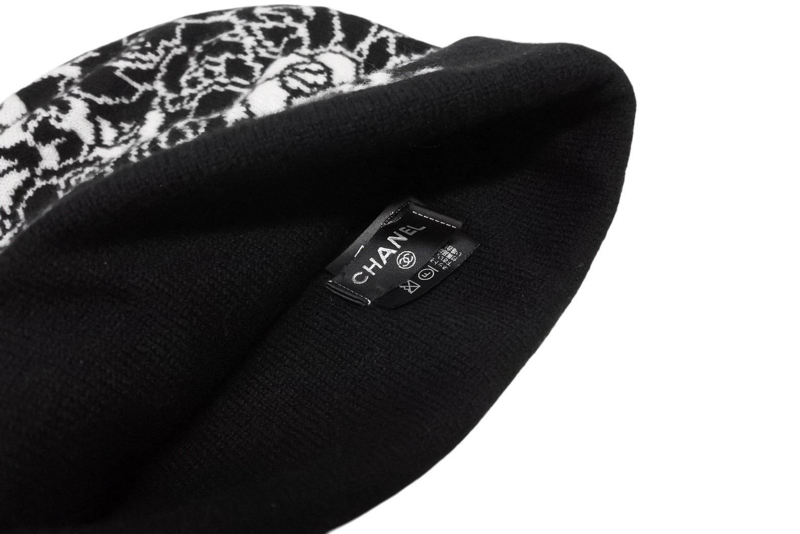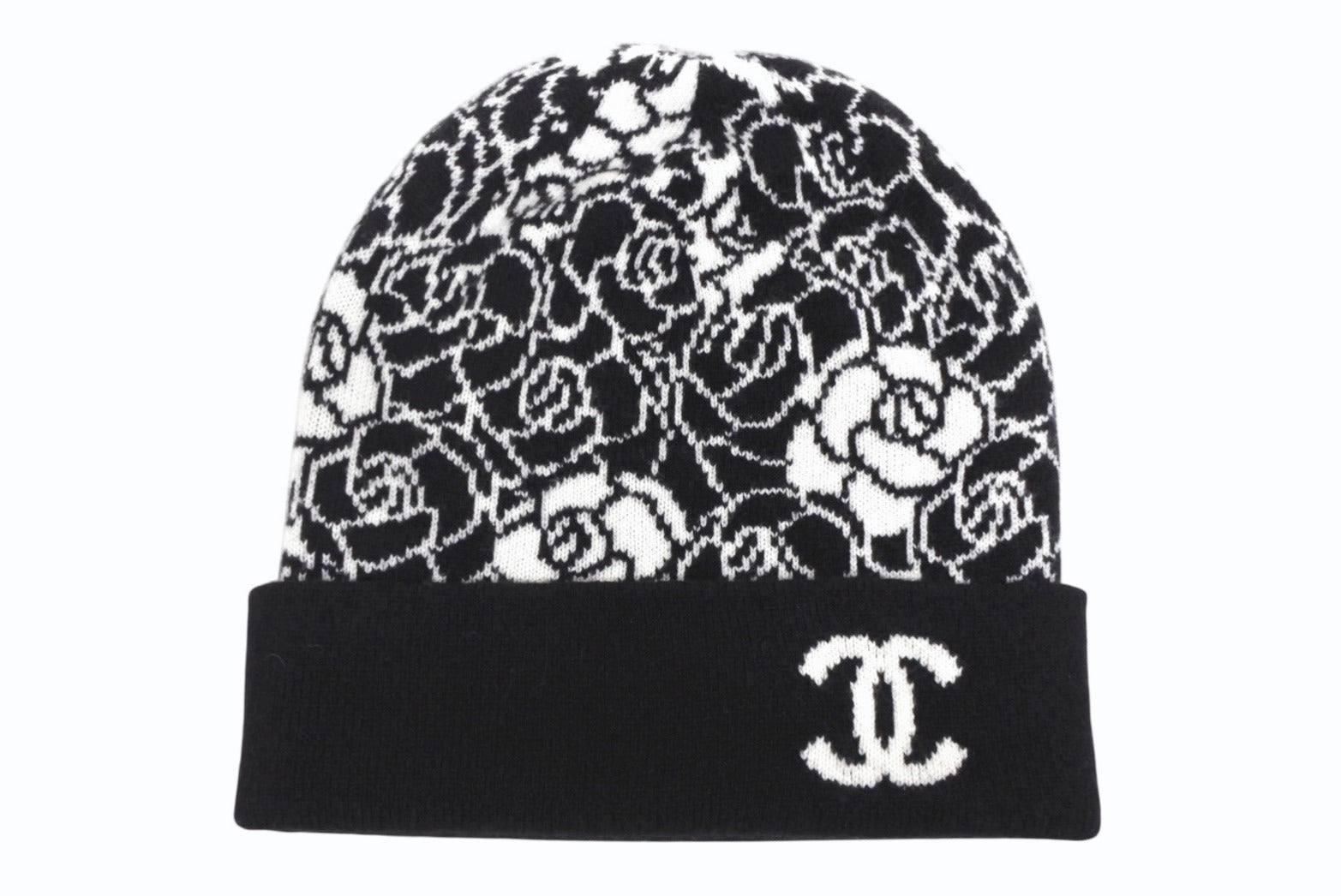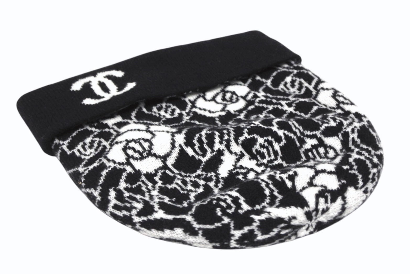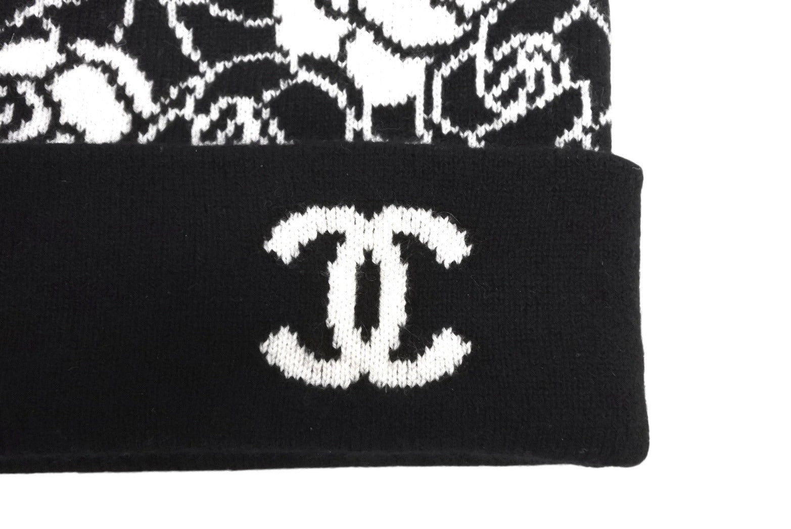 CHANEL シャネル ニットキャップ ビーニー カメリア AA9508B14321 ココマーク カシミヤ シルク ブラック 美品 中古 4b010225