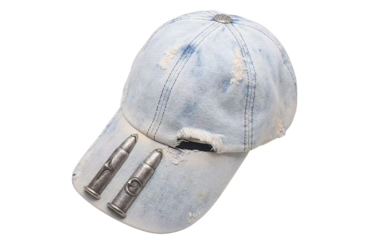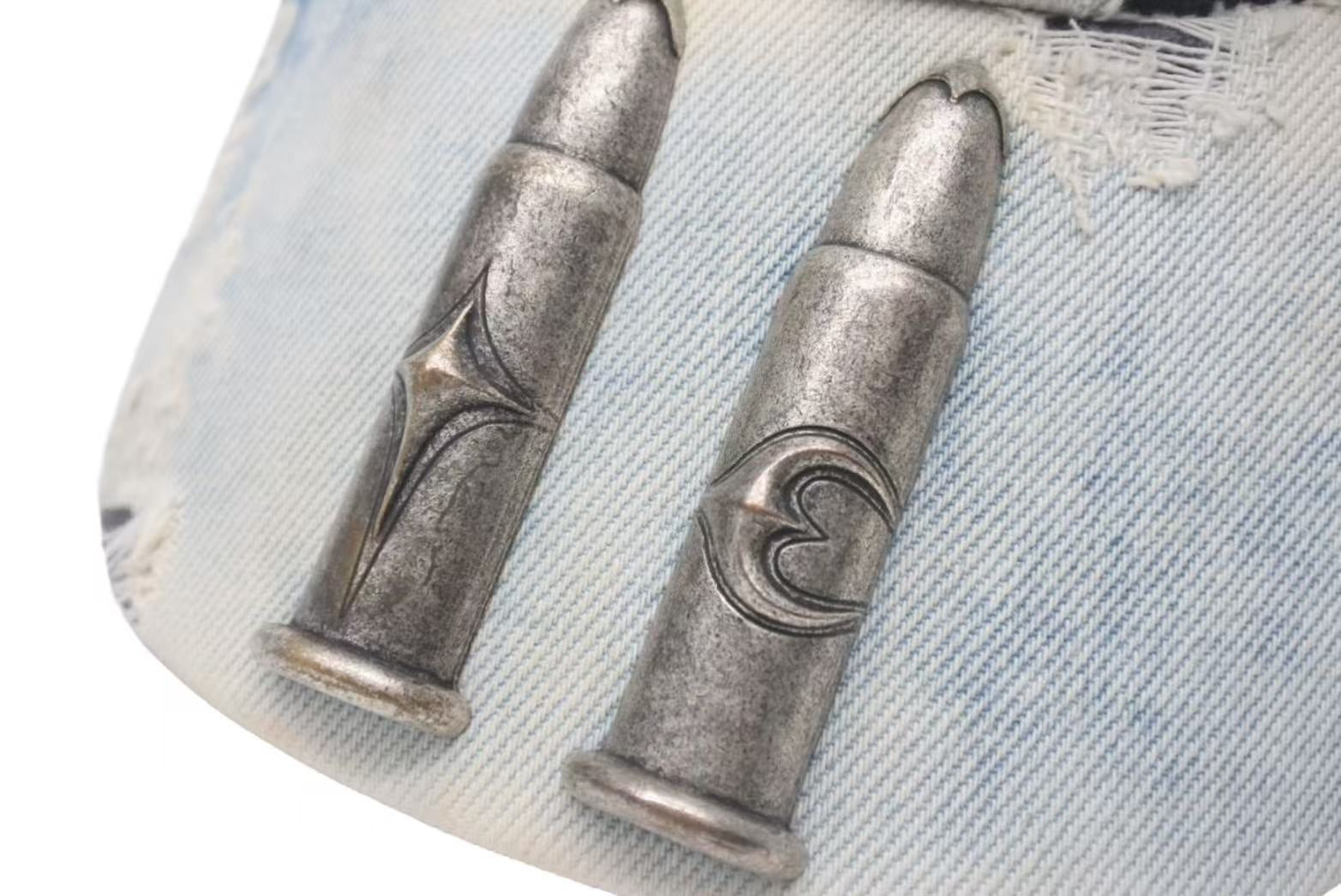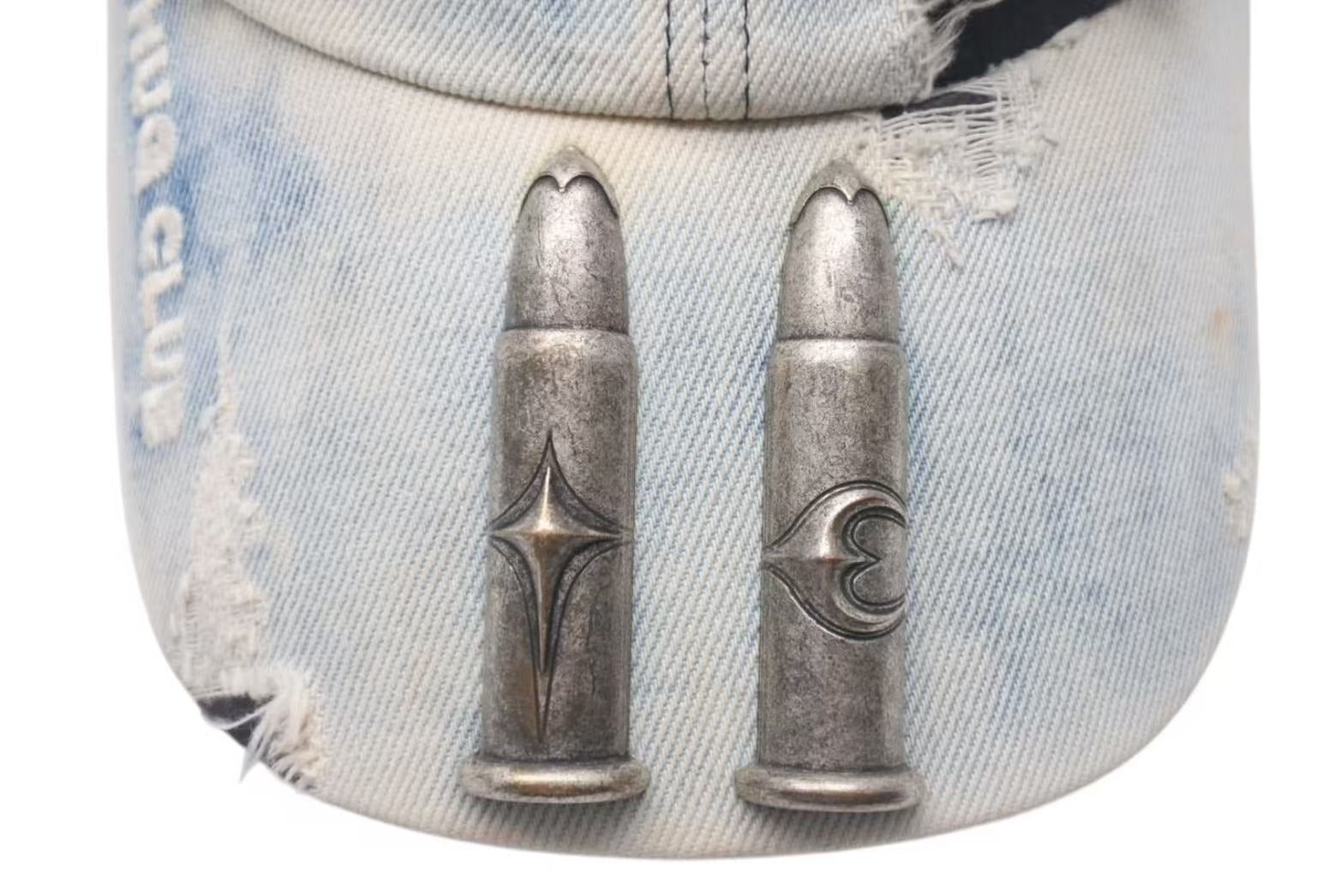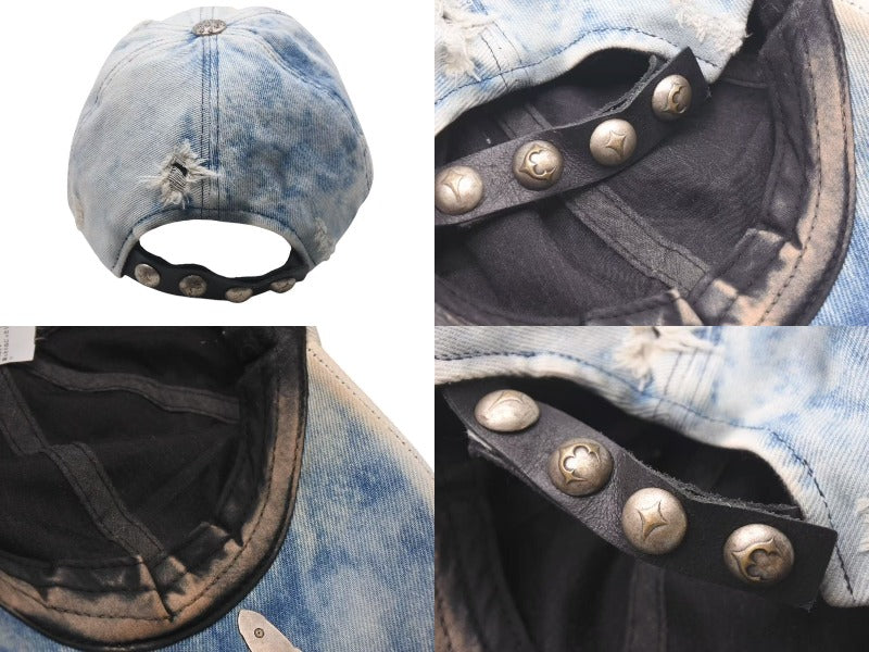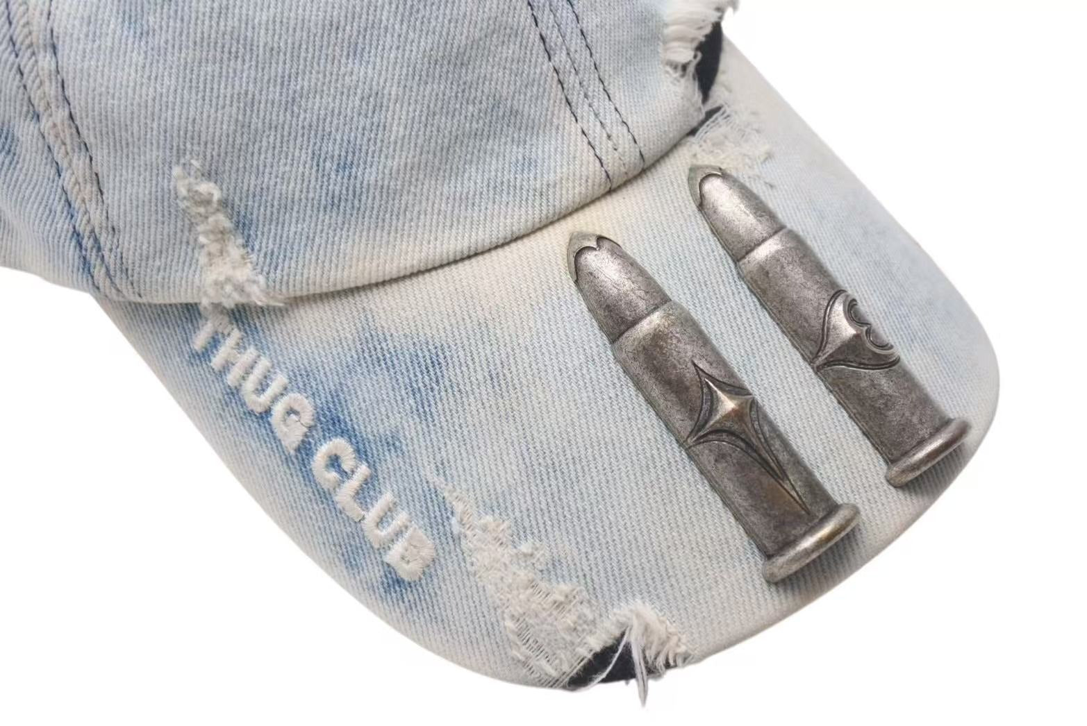 THUG CLUB サグクラブ TC Life Cap キャップ 帽子 デニム 銃弾 コットン ブルー アンティークシルバー金具 美品 中古 4c073788