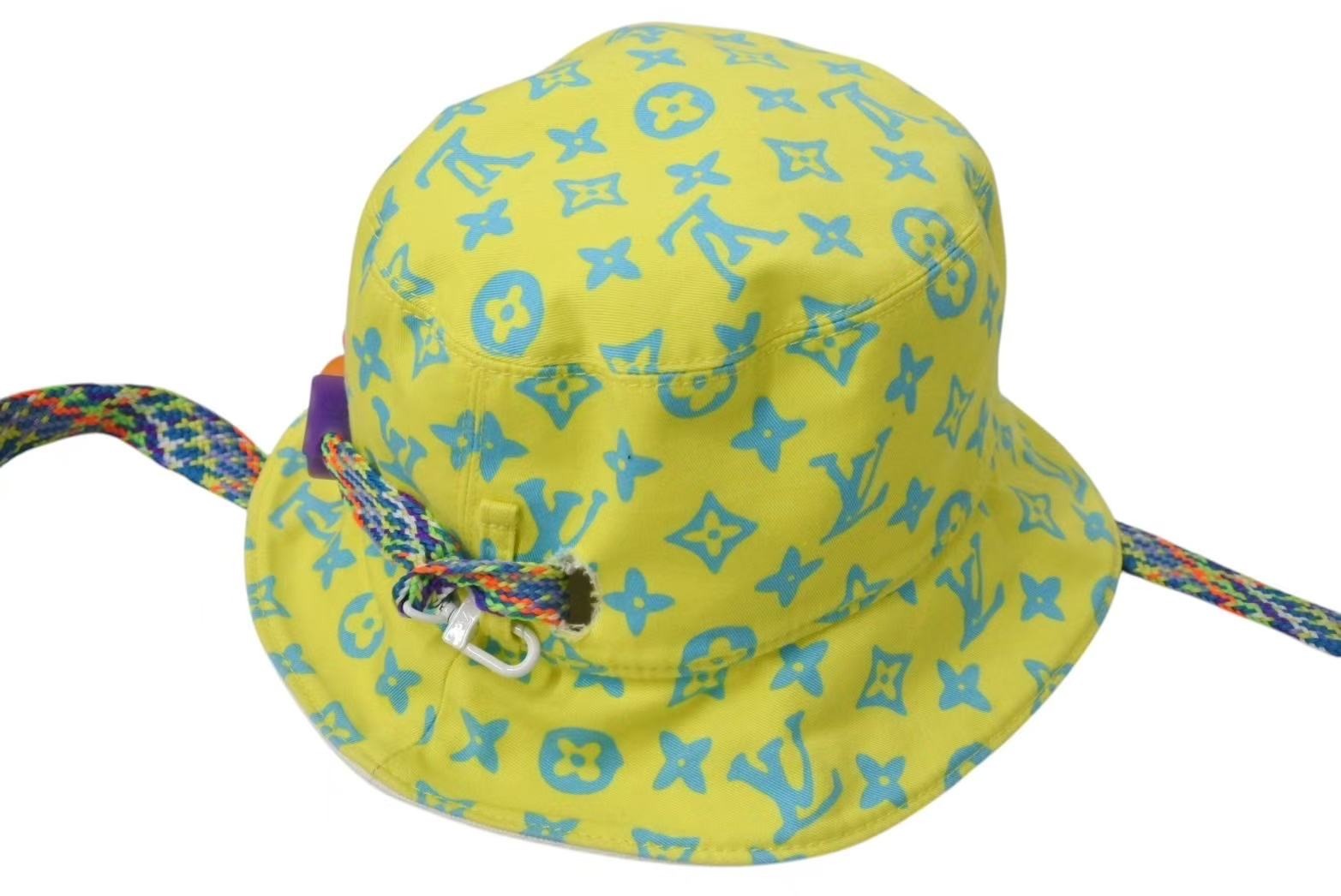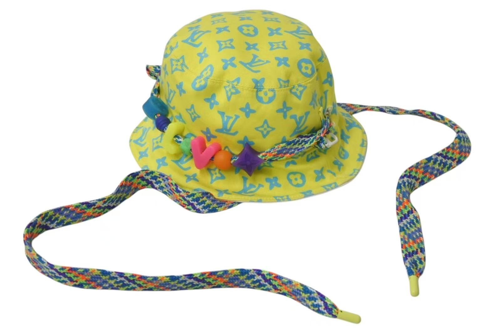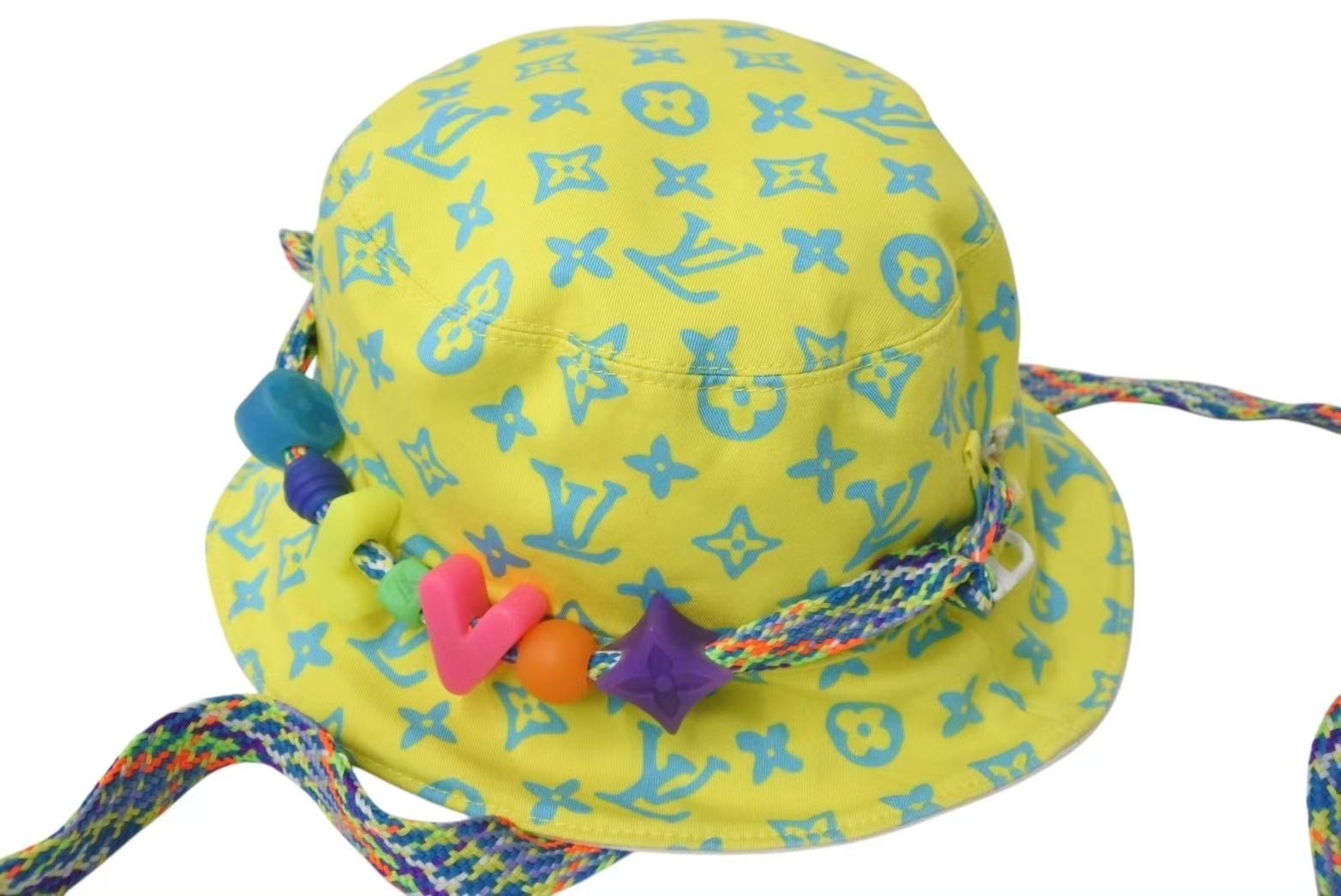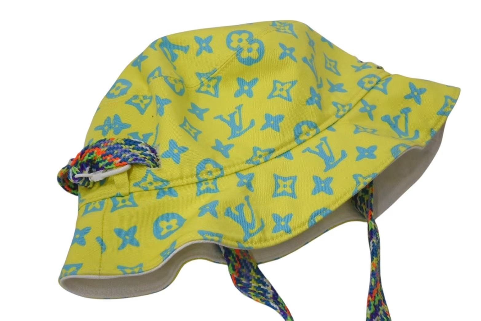 LOUIS VUITTON ルイヴィトン LVプレイ バケットハット M7060M イエロー ホワイト モノグラム リバーシブル コットン 美品 中古 4c074247
