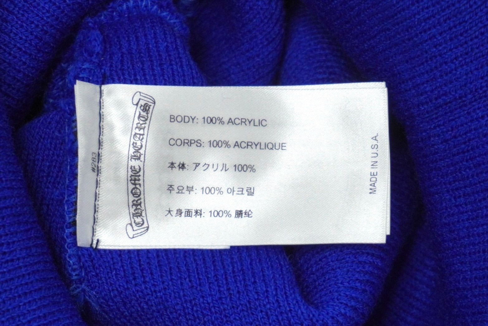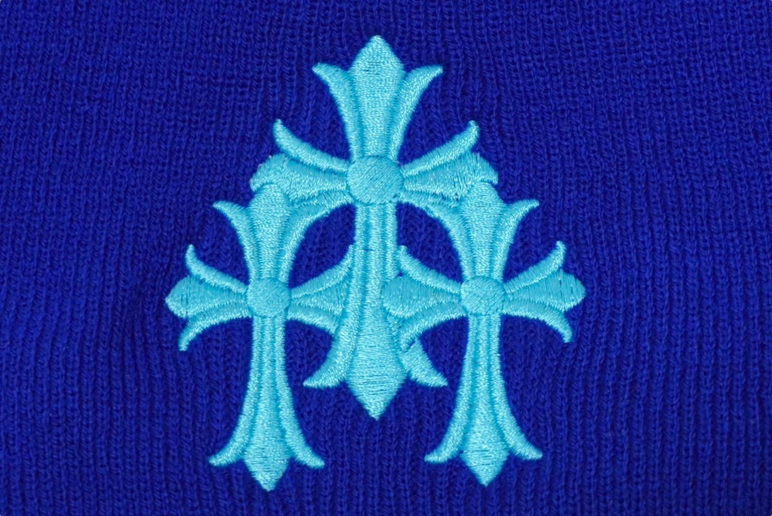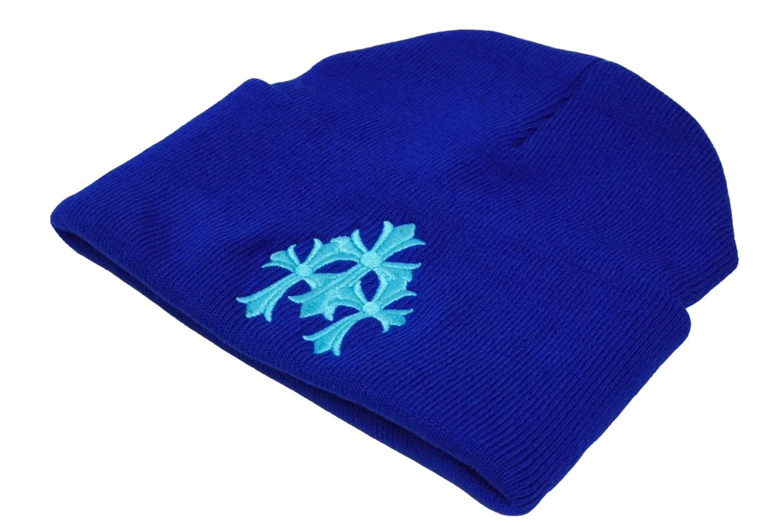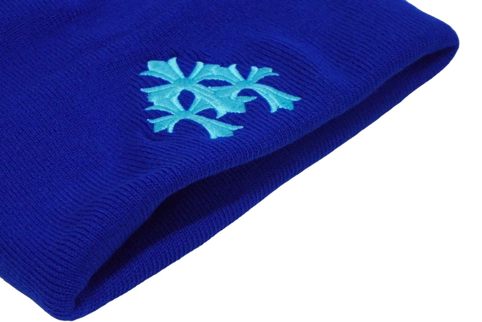 新品未使用 CHROME HEARTS クロムハーツ ニットキャップ CHクロス サイズONE SIZE/23cm アクリル ブルー 刺繍 ロゴ 中古 61992