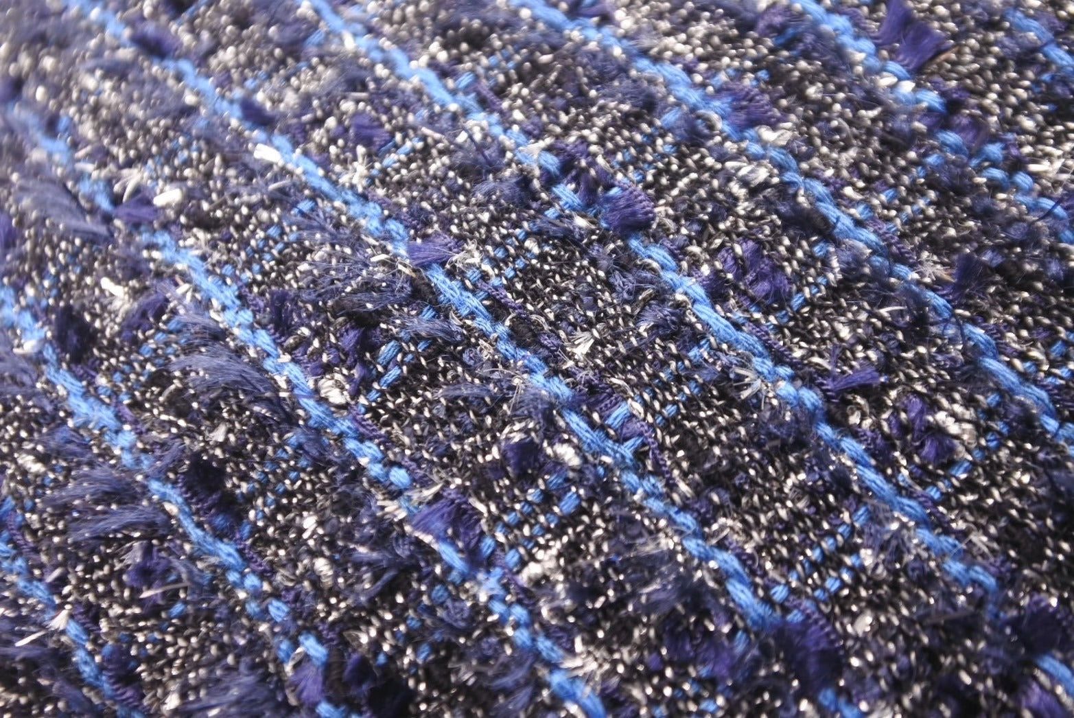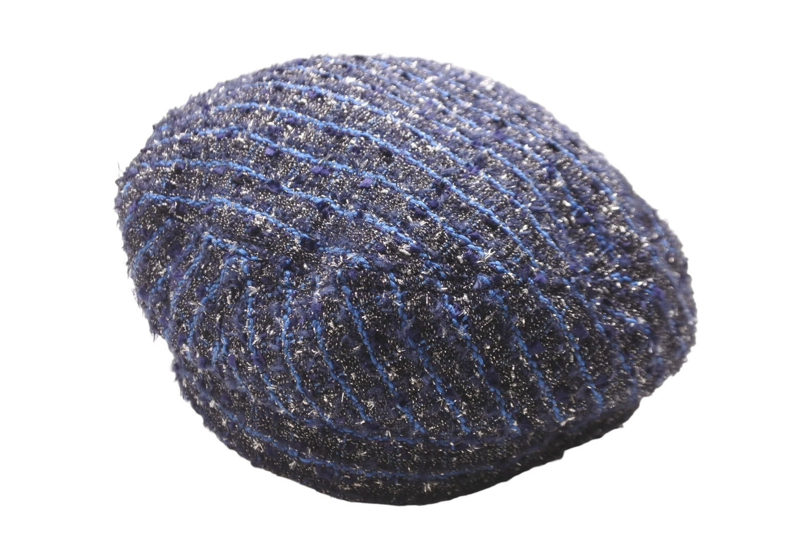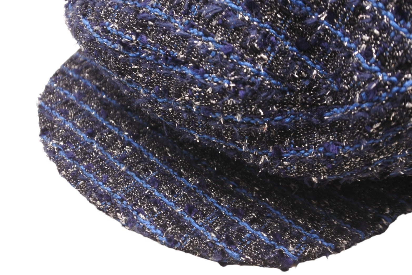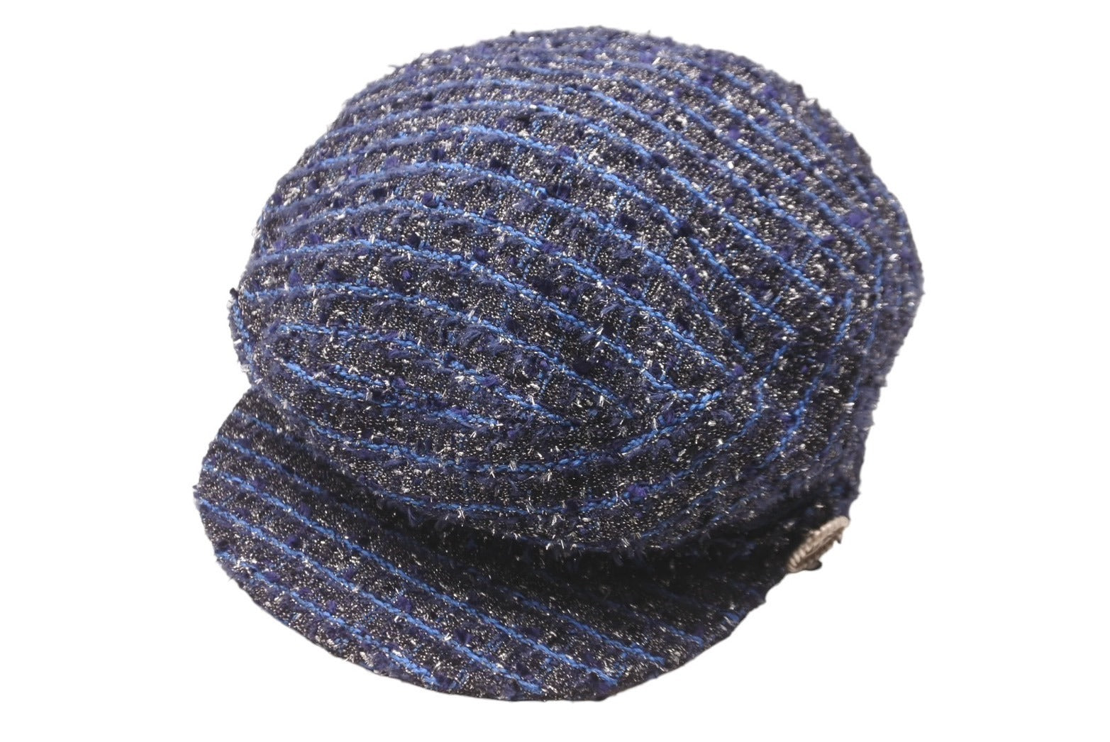 新品同様 CHANEL シャネル ココボタン キャスケット キャップ 帽子 ツイード ブルー ブラック シルバー金具 サイズM 中古 63907
