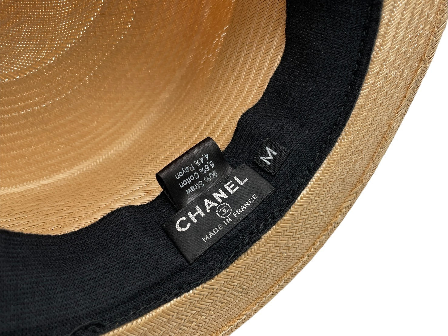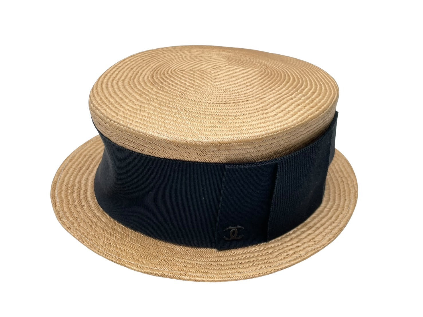 極美品 CHANEL シャネル ココマーク ストロー ハット ベージュ 藁 帽子 ロゴ ブラック 小物 サイズM 中古 64158