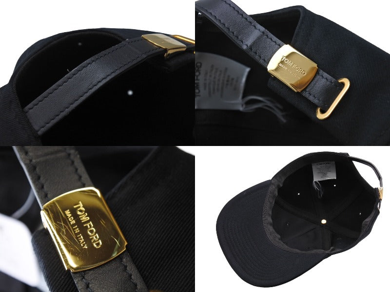 TOM FORD トムフォード COTTON CANVAS TF BASEBALL CAP キャップ ベースボールキャップ ブラック ゴールド金具 美品 中古 66339