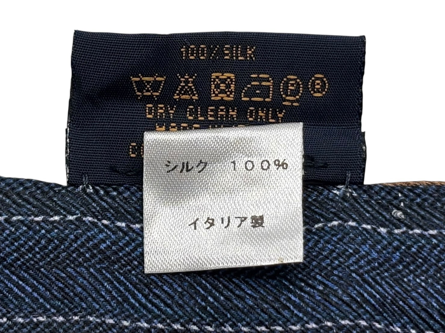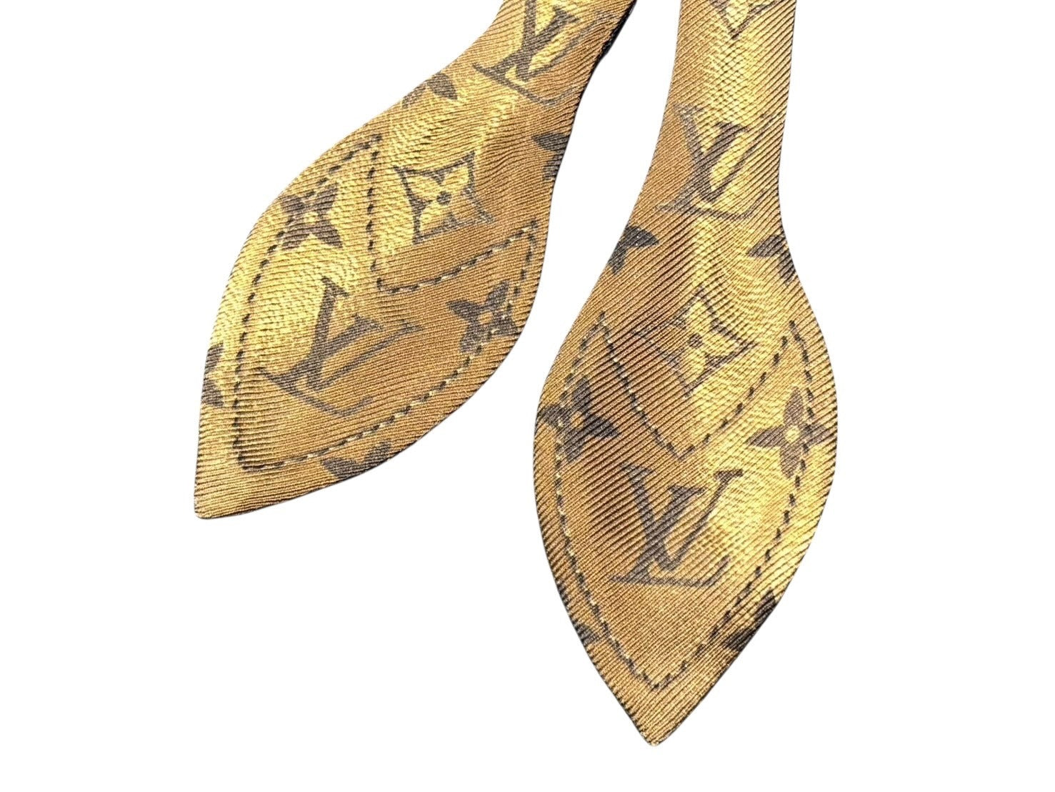 LOUIS VUITTON ルイヴィトン シルク モノグラムパターン バンドー 3D ツイリー スカーフ M76931 ネイビー ゴールド 美品 中古 4b007989